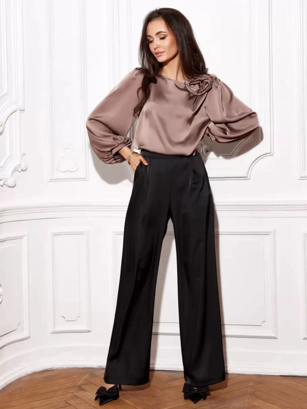 Dlouhé, elegantní saténové kalhoty z nové jarní kolekce.