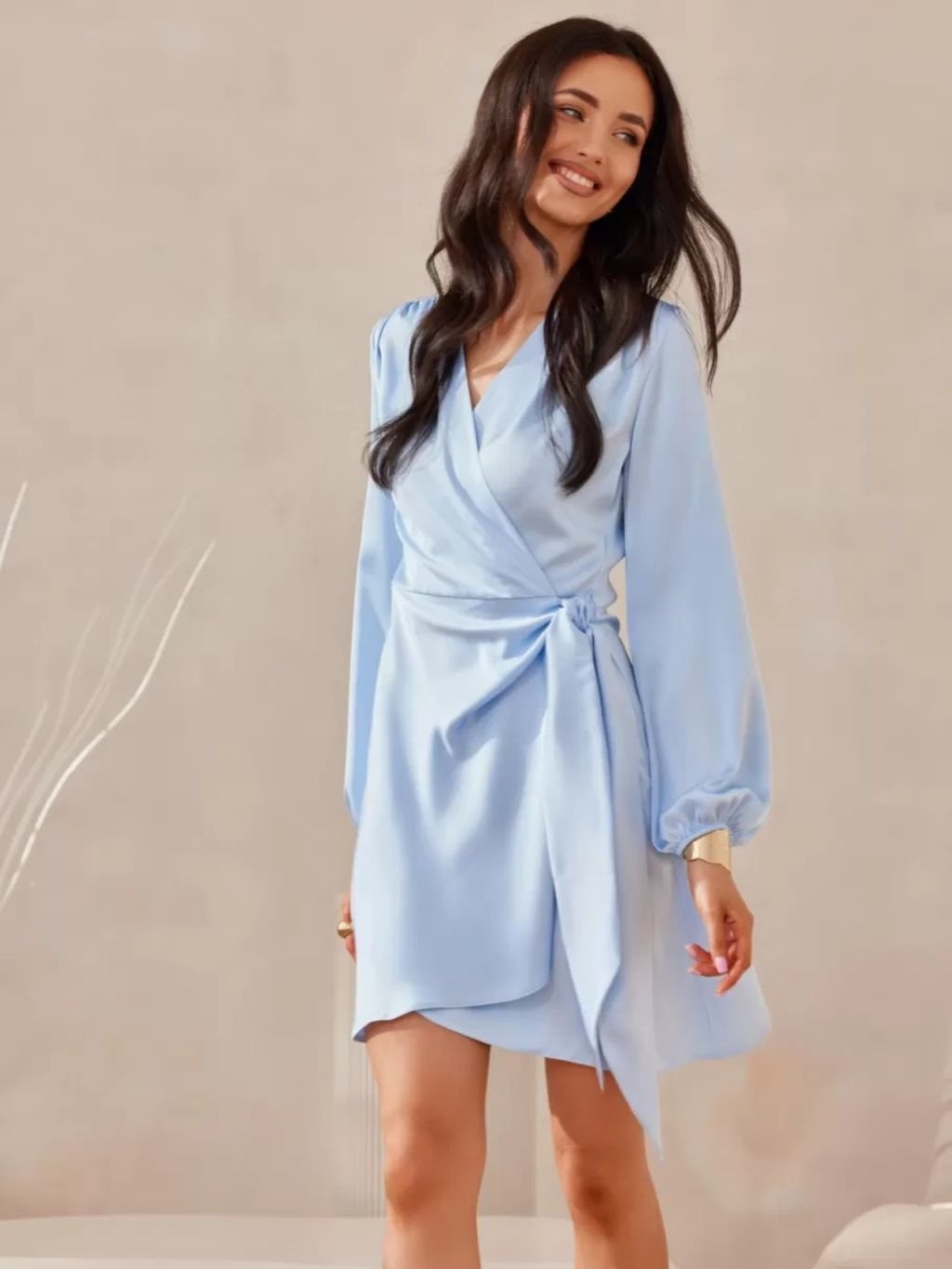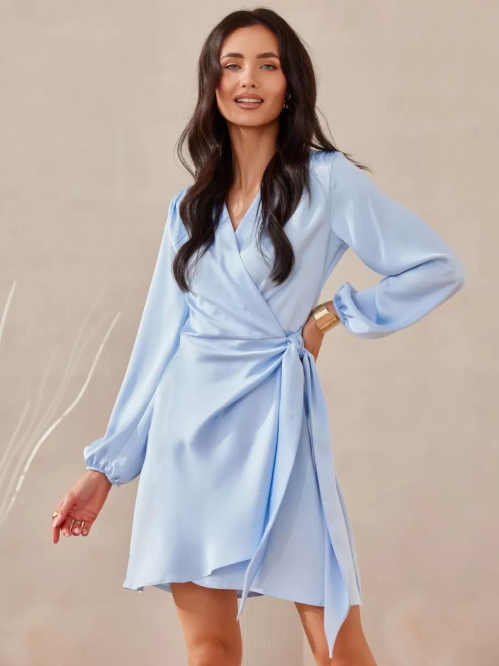 Dámske šaty viazané v páse, s nafúknutými rukávmi z novej jarnej kolekcie.