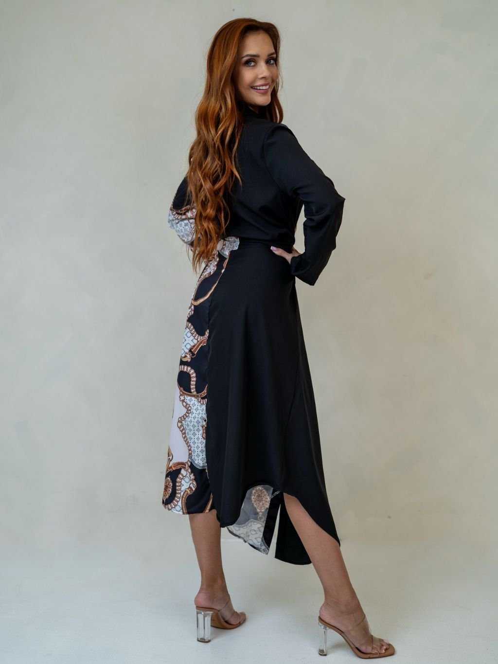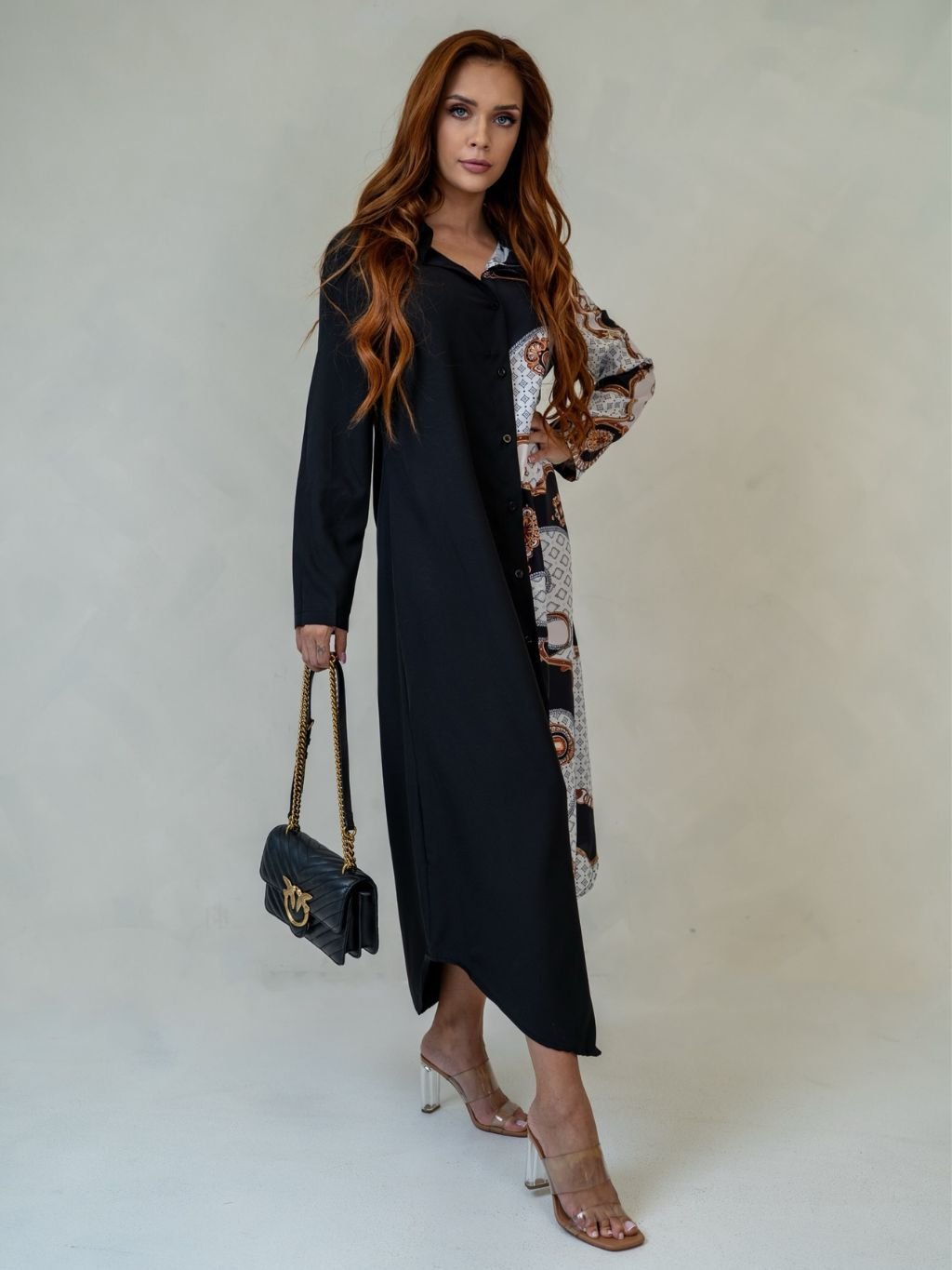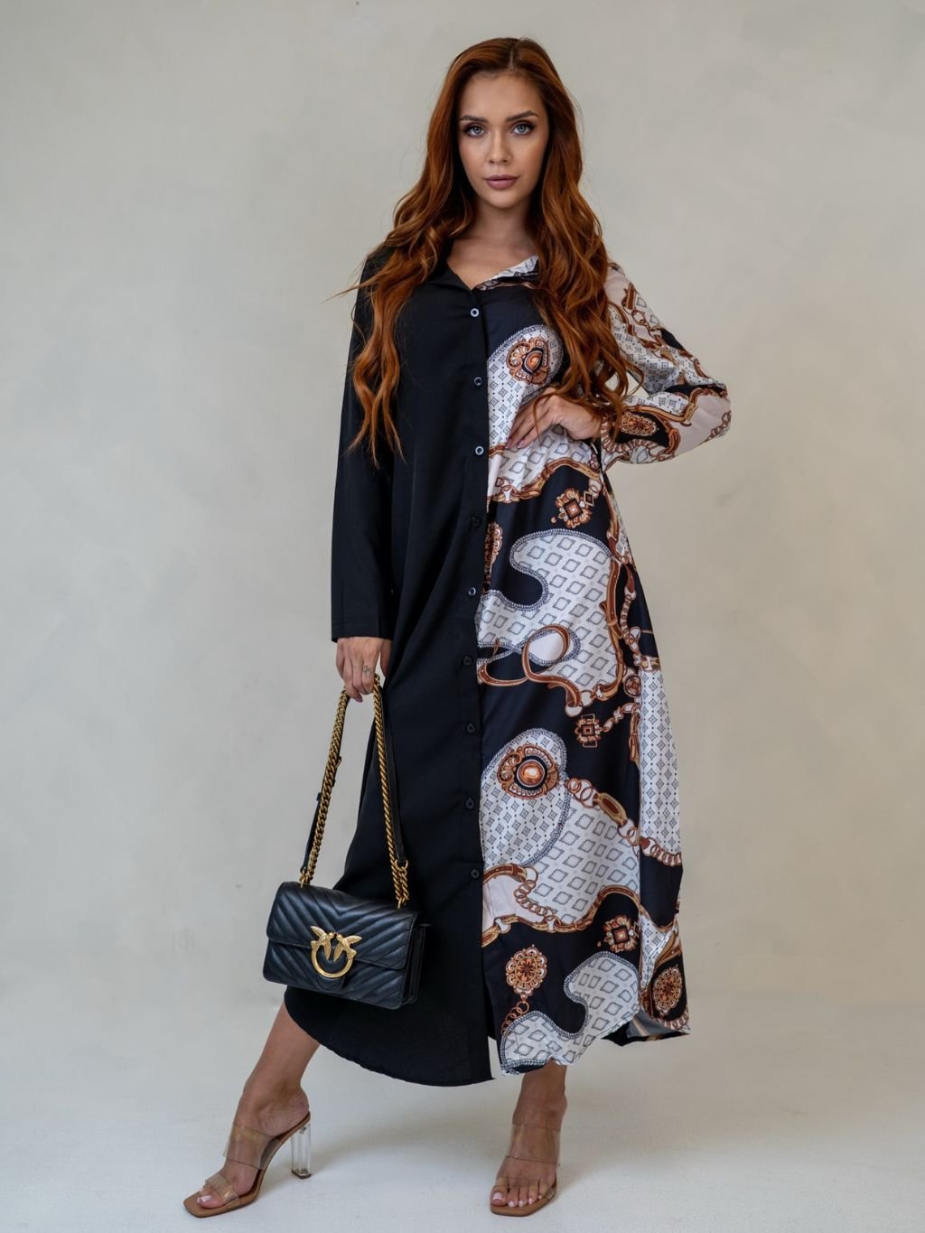 Dámske košeľové šaty so zaujímavým vzorom z novej kolekcie.