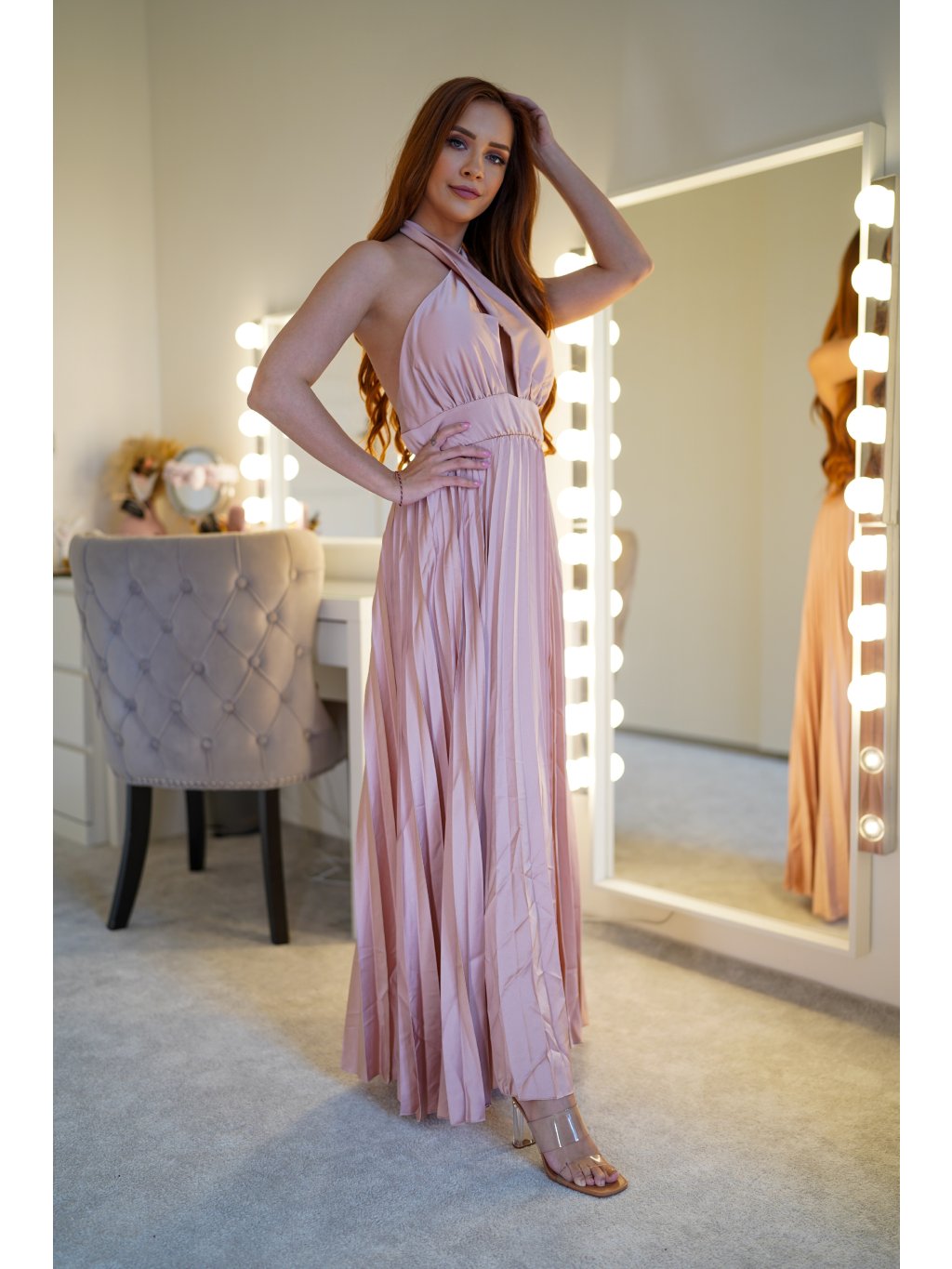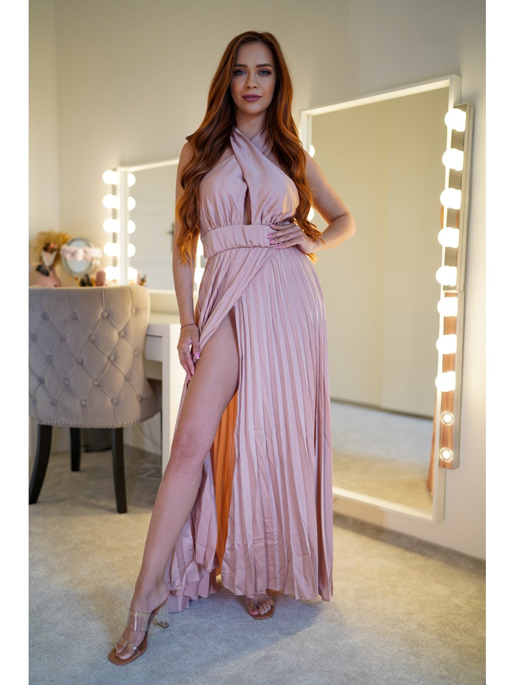 Dámské společenské šaty z nové kolekce. NOVINKA podzim/zima 2025 Rozměry: vel. S - prsa 38 cm (x2), celková délka 152 cm vel. M - prsa 40 cm (x2), celková délka 153...