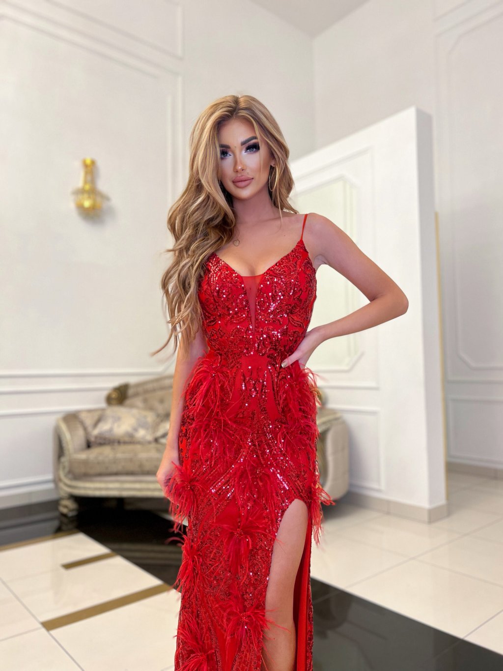 Dámske šaty z novej kolekcie. NOVINKA zima 2024 Rozmery: veľ.36 - prsia 42/44 cm (x2), pás 32/34 cm (x2), celková dĺžka 155 cm veľ.38 - prsia 44/46 cm (x2), pás...