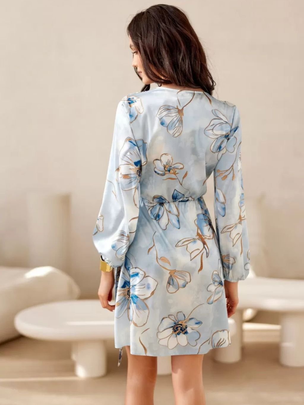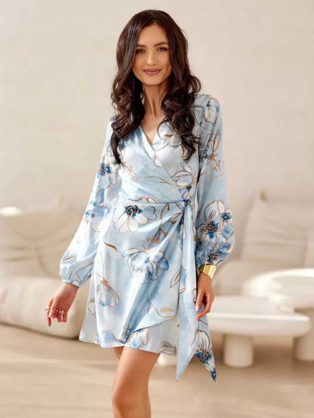 Dámské šaty s dlouhými rukávy, nemají podšívku a v pase se zapínají na dvojitou šňůrku z nové jarní kolekce.