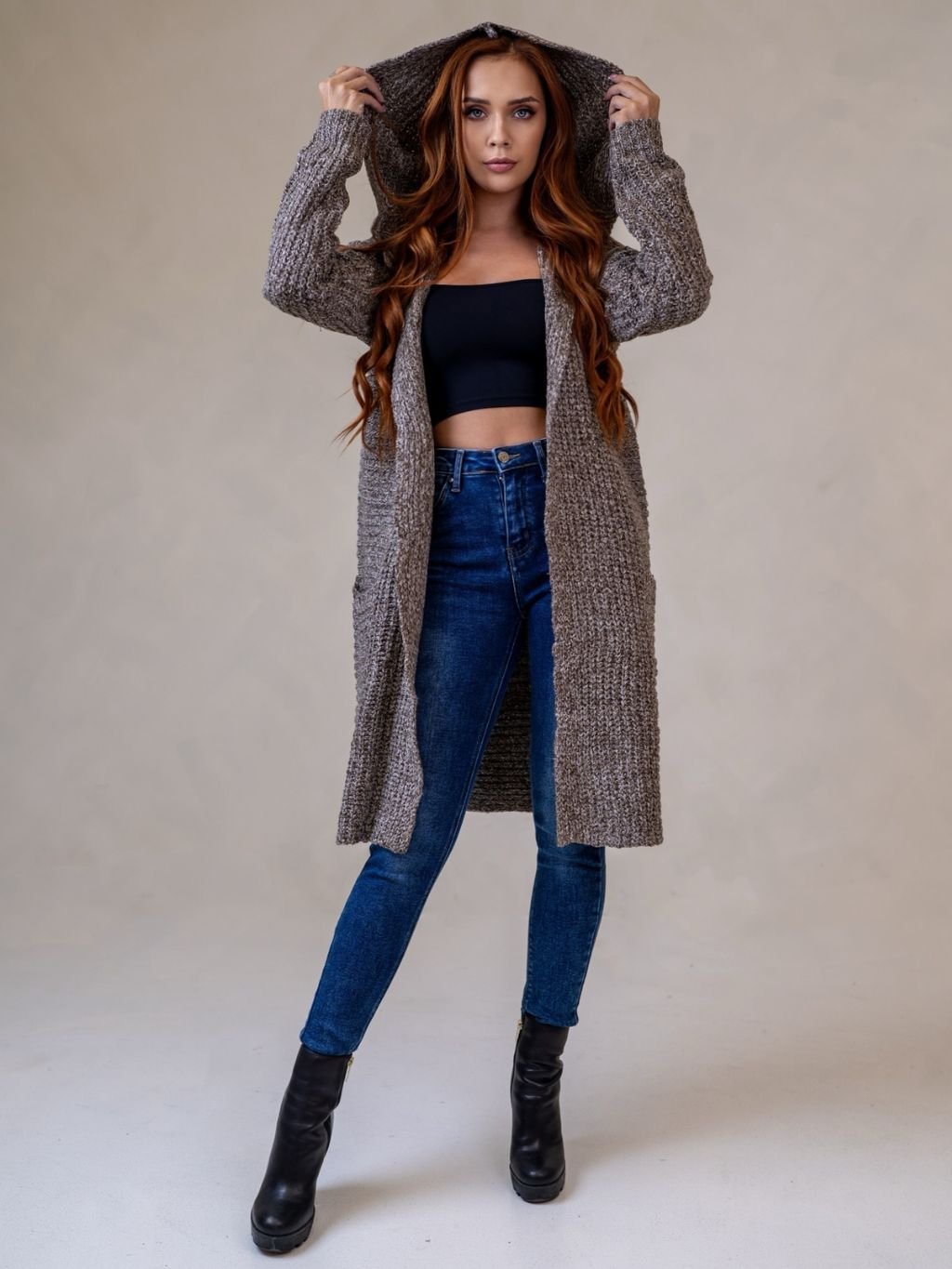 Dámsky dlhý kardigán s vreckami z novej krásnej kolekcie. Príjemný hrejivý materiál, voľného a pružného strihu.
