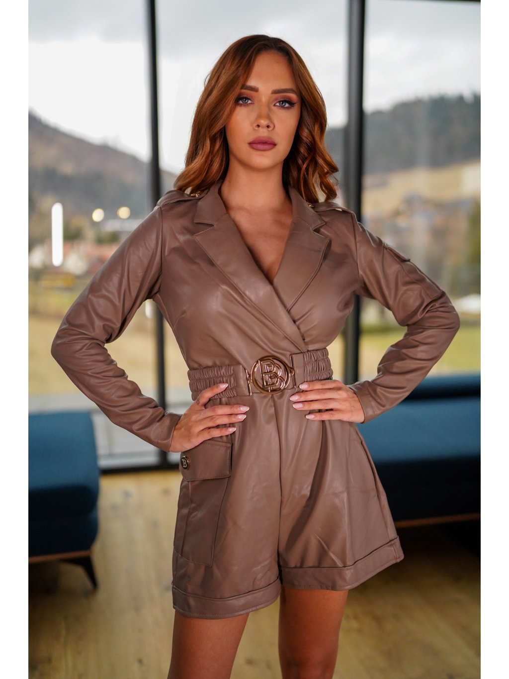 Luxusní dámský kožený overal z nové krásné kolekce.