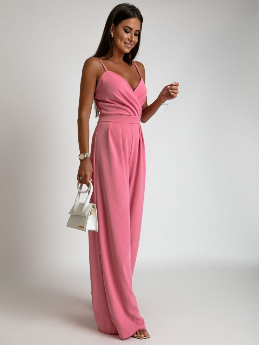 Dámský elegantní overal s páskem z nové letní kolekce. NOVINKA léto 2025 Vyrobeno z příjemné látky. Produkt má elastické prošívání na zádech. Zajímavé zavazování u...
