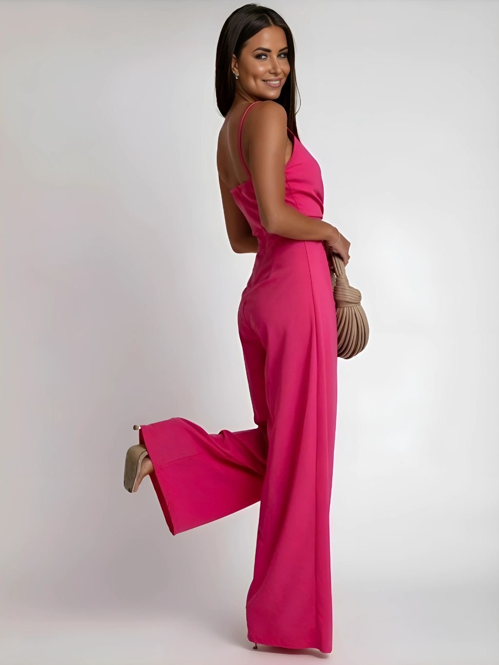 Dámský elegantní overal s páskem z nové letní kolekce. NOVINKA léto 2025 Vyrobeno z příjemné látky. Produkt má elastické prošívání na zádech. Zajímavé zavazování u krku....