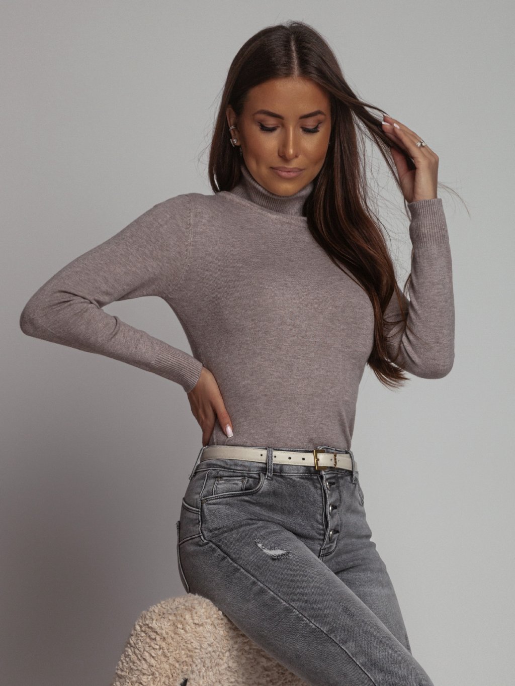 Stylový dámský svetr s rolákem z nové krásné kolekce.