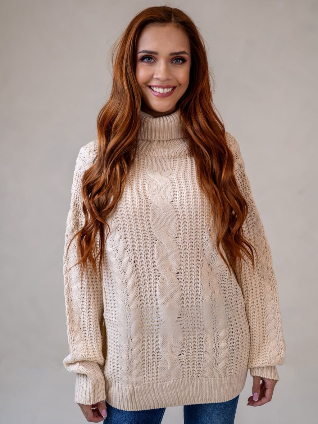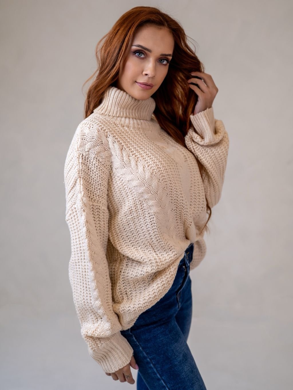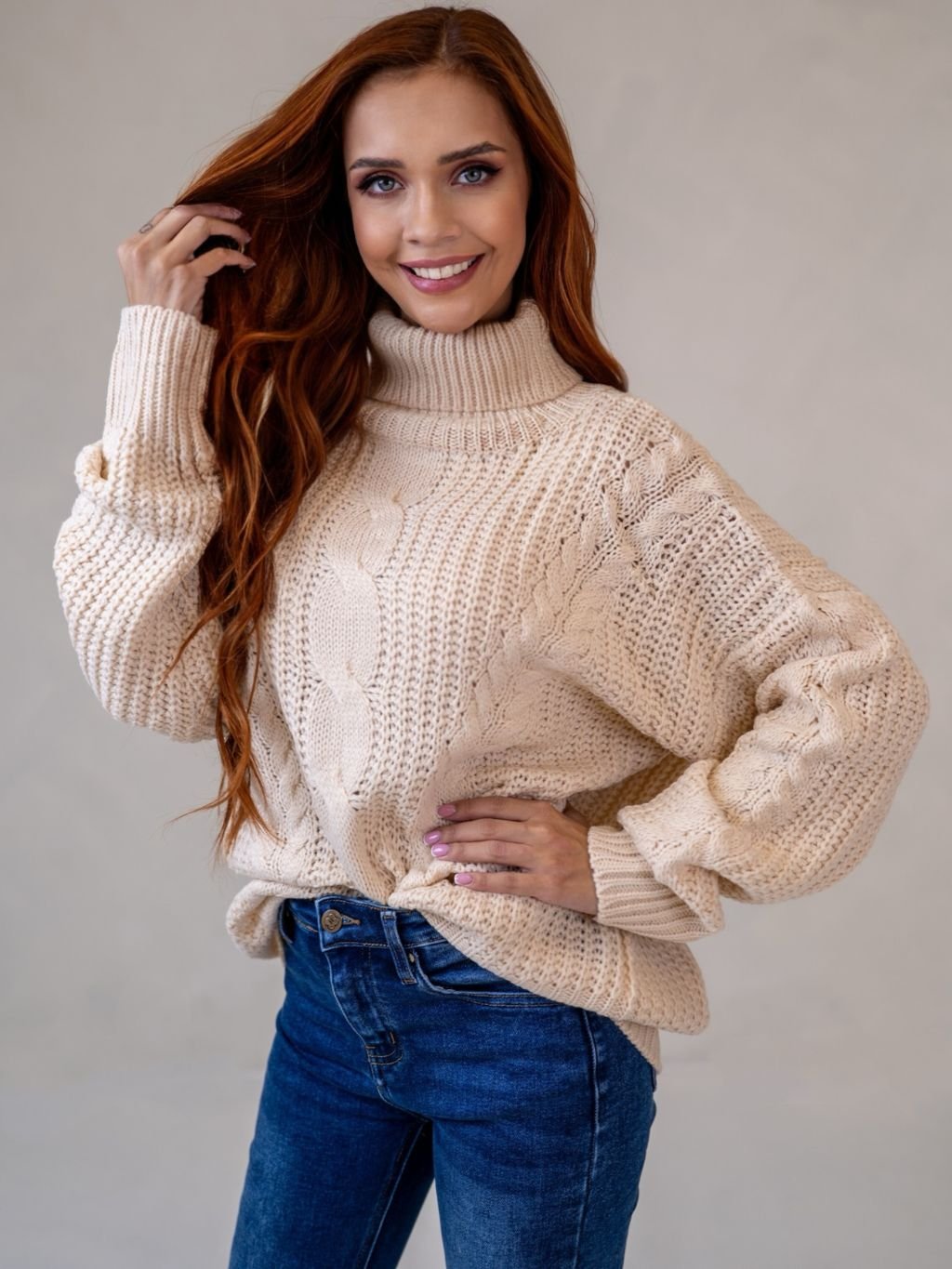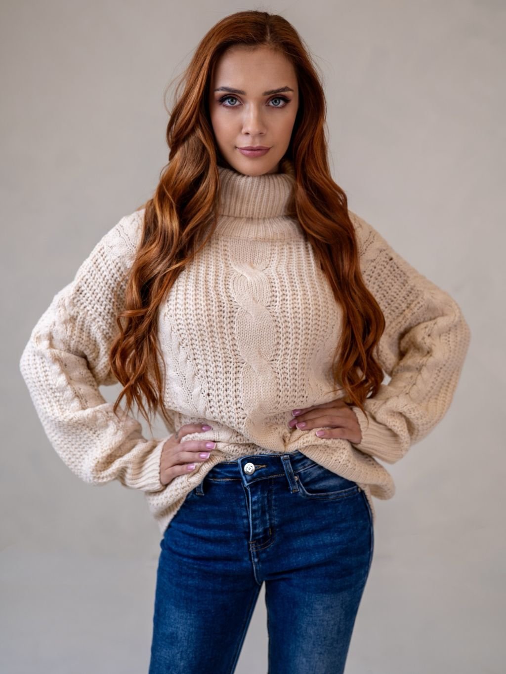 Dámský úpletový svetr s rolákem z nové krásné kolekce. NOVINKA podzim/zima 2024 Rozměry: velikost ONESIZE prsa - 54 cm (x2), délka 65 cm