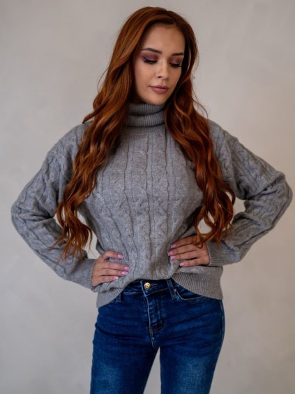 Stylový dámský svetr s rolákem z nové krásné kolekce. NOVINKA podzim/zima 2023. Rozměry: velikost ONESIZE prsa - 41 cm (x2), délka 57 cm