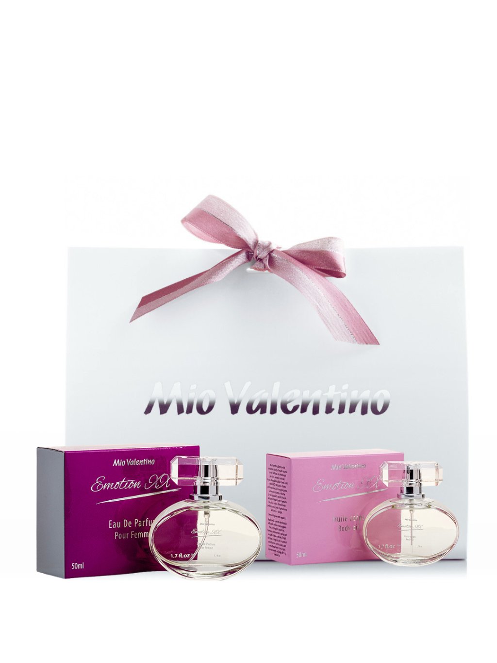 Objevte harmonii mezi péčí o tělo a smyslnou vůní, která vás přenese do světa luxusu a elegance. Emotion XX Dárkový set Queen Of Senses obsahuje naše dva nejoblíbenější produkty – Parfémovaný tělový olej Emotion XX a Parfém Emotion XX sladěné v jedné okouzlující smyslné vůni. Dámský parfém - Emotion XX Eau de Parfém Pour Femme, je oslavou ženskosti a radosti ze života. Je to prohlášení o kráse bytí ženou ao její oslnivé přítomnosti, která nezůstane nepovšimnuta. Každá nota tohoto parfému je jako pocta nekonečné ženské síle a smyslnosti. Prémiový Parfémovaný tělový olej Emotion XX, který je součástí tohoto setu, je jako pocta přírodě v každé kapce. Jeho směs arganového, makadamového, mandlového a meruňkového oleje zanechává pokožku vyživenou a nekonečně hladkou.Tento exkluzivní set je zabalen do elegantní dárkové krabičky, ozdobené jemnou mašlí a stříbrným logem Mio Valentino, což z něj činí dokonalý dárek pro vás nebo vaše blízké. Ať už ho věnujete sobě, své partnerce nebo přítelkyni, Emotion XX Dárkový set Queen Of Senses je ideální volbou pro oslavu lásky, ženskosti a výjimečných okamžiků – nejen na Valentýna.
