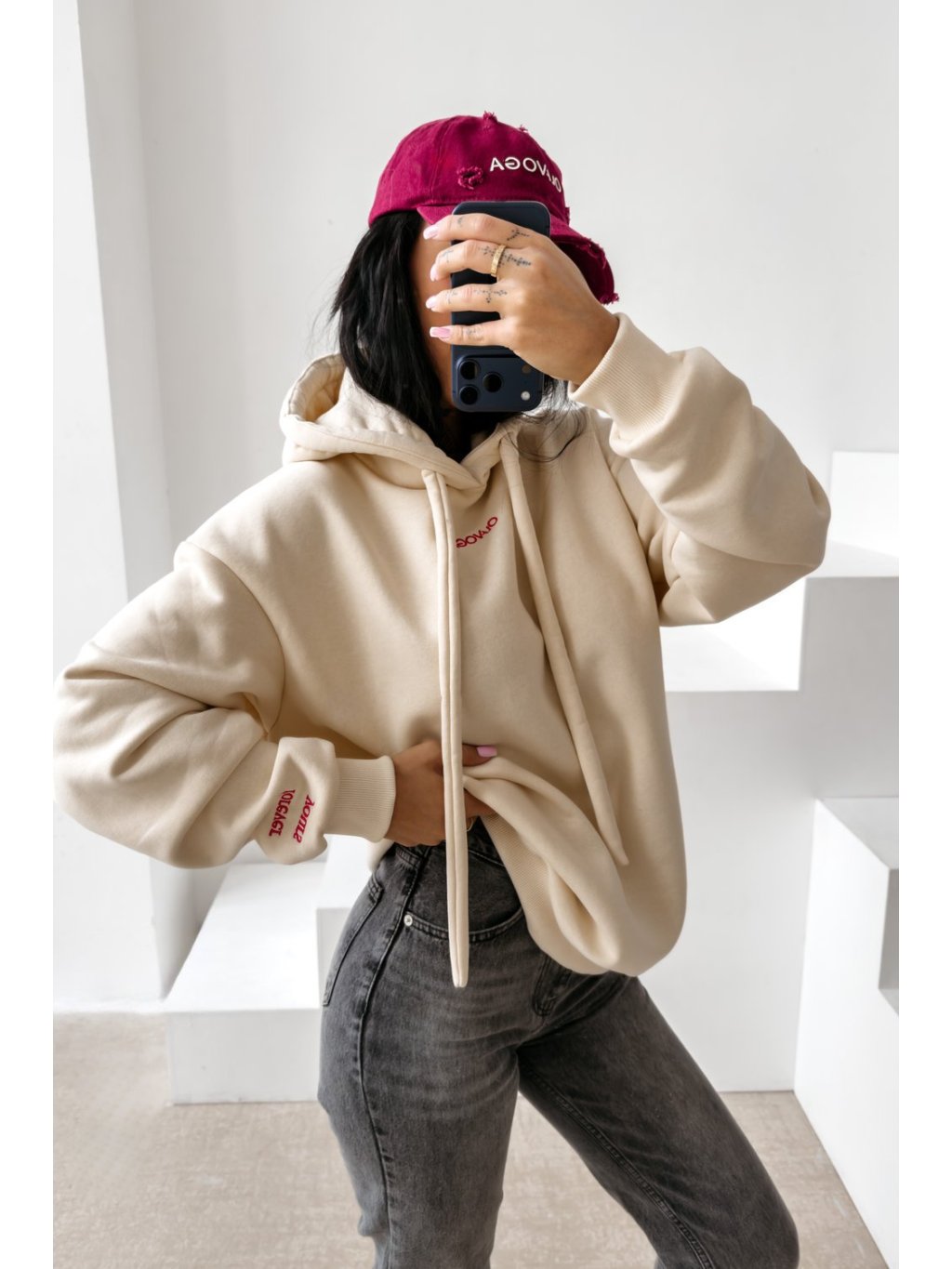 Volná, nadrozměrná dámská mikina s kapucí, která kombinuje pohodlí a výrazný vzhled. Vyrobeno z vysoce kvalitního, měkkého materiálu s vysokým podílem bavlny, je ideální volbou pro každodenní nošení. Model má dlouhé rukávy, sníženou linii ramen a elastické vsadky na koncích rukávů a ve spodní části. Na přední straně je decentní výšivka loga OLAVOGA, na rukávu minimalistický nápis NAVŽDY TVÁ a zadní stranu zdobí velkolepá výšivka „Jeho královna OLAVOGA“. Svetr je v dámském stylu, ale k dispozici je i pánská verze, díky čemuž je perfektní volbou pro sladěné sety.Doplňkové parametry