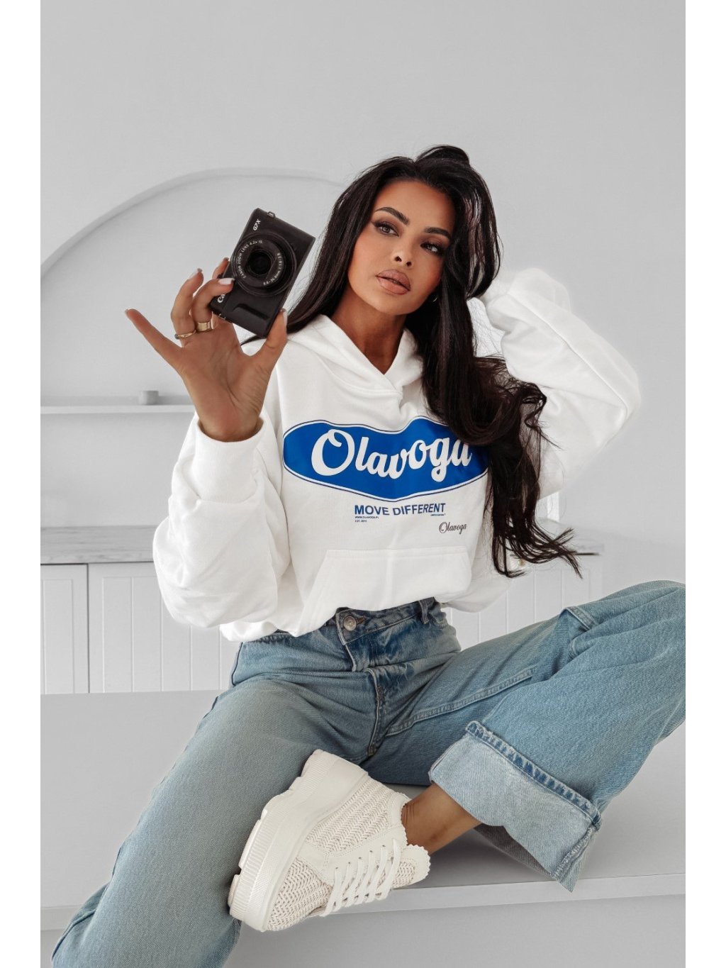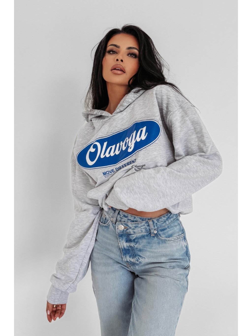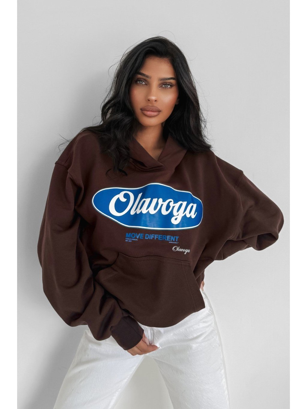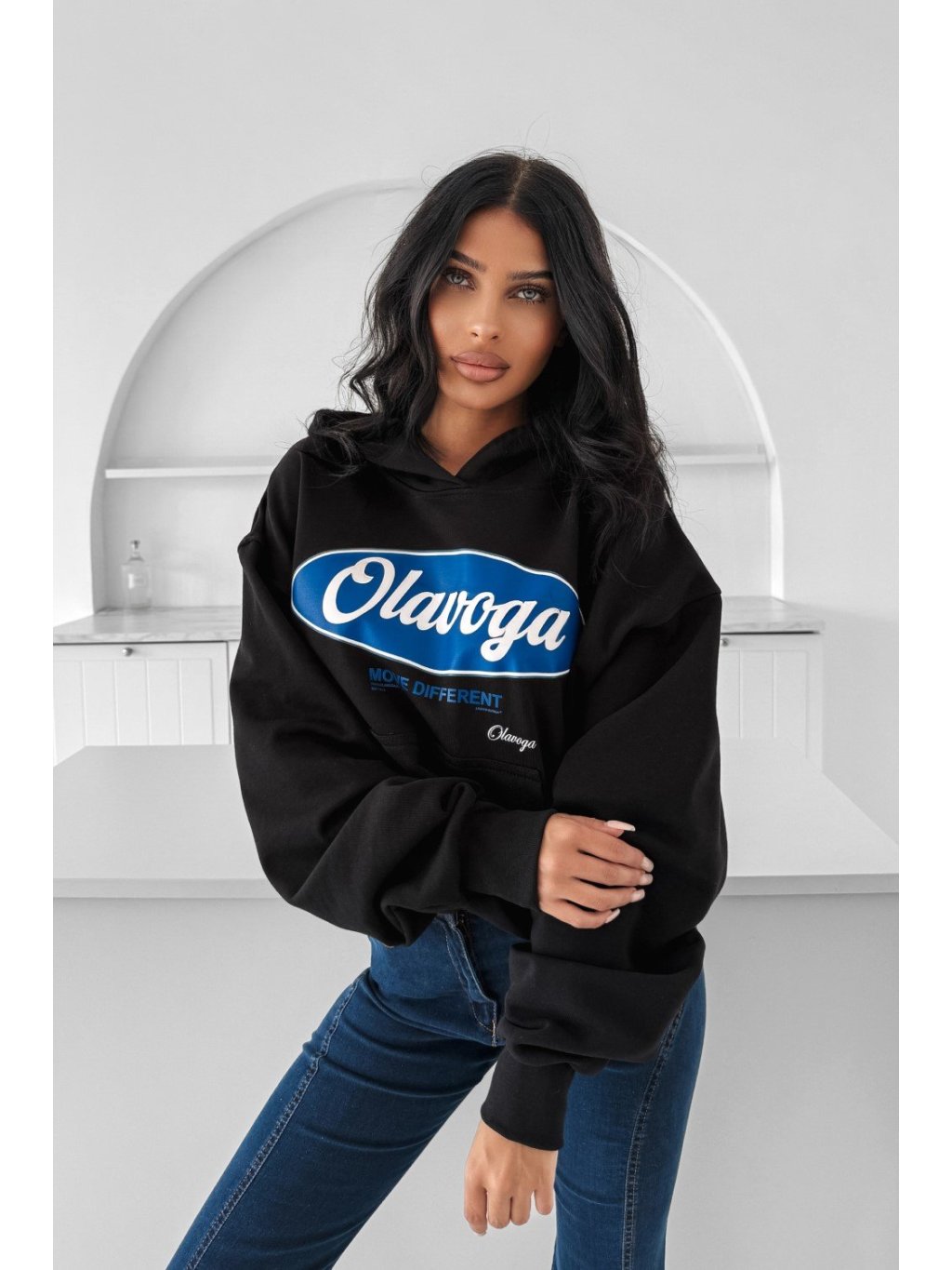 Modelka meria 165 cm a má na sebe veľkosť S. Veľká mikina s kapucňou vyrobená z kvalitného materiálu na báze bavlny. Na prednej strane sa nachádza praktické klokanie vrecko a veľké, ručne písané logo OLAVOGA na modrom pozadí. Klasický strih je doplnený rebrovanými sedlami, ktoré zaisťujú pohodlné a elegantné nosenie.Zloženie: 80 % bavlna, 20 % polyester