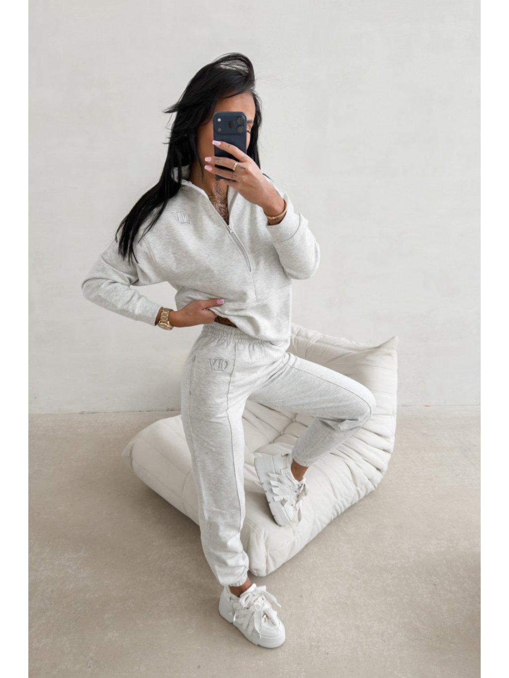 Táto ležérna tepláková súprava je vyrobená z najkvalitnejšej, mäkkej BAVLNY, ktorá skutočne objíme telo. Moderný, nadrozmerný strih a precízne vyrobené trojrozmerné detaily robia z tejto súpravy jeden z najexkluzívnejších kúskov v kolekcii. Voľný, nadrozmerný strih so zvýšeným golierom na zips. Na prednej strane je viditeľná diskrétna výšivka OLV. Skutočnou špecialitou svetra je zadná časť: veľkolepá, trojrozmerná 3D výšivka „OLV“, ktorá sa nachádza na jemnej, tónovej potlači „OLAVOGA“. Pohodlné, voľné nohavice s elastickým pásom a rovnými nohavicami, ktoré končia pasom. Na nohaviciach je jemná výšivka loga OLV.