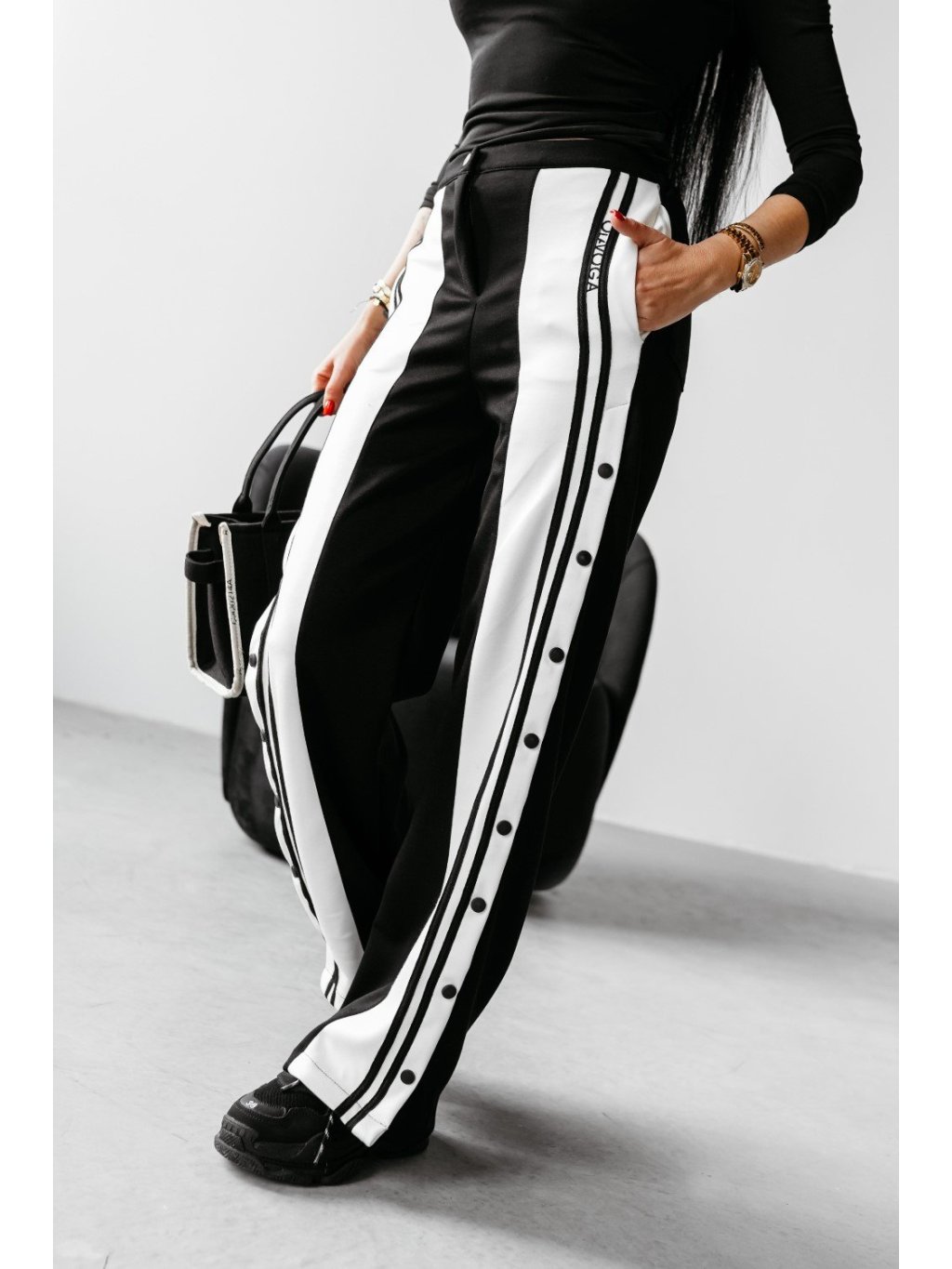 Elegantné dvojfarebné nohavice - štýlový moderný vzhľad vyrobený z materiálov prémiovej kvality.