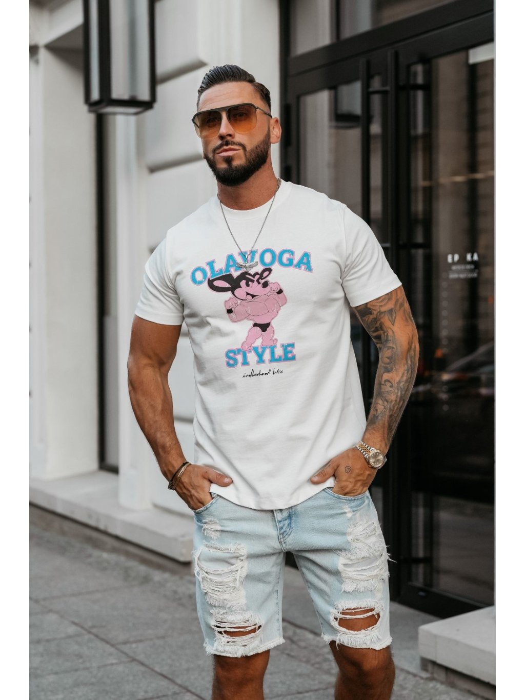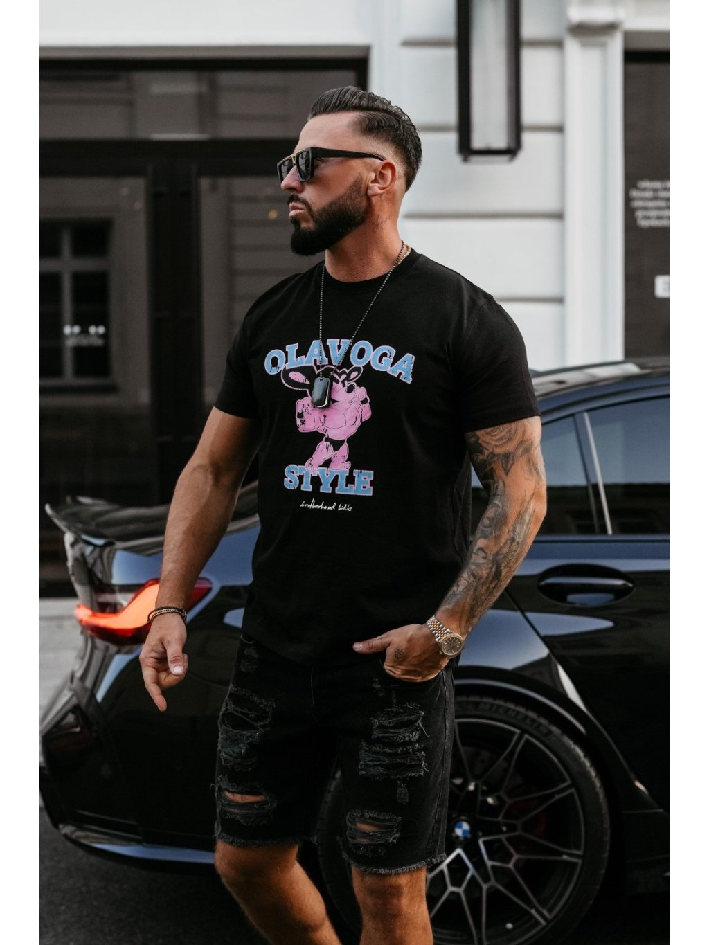 Model má výšku 185 cm a nosí velikost L. Klasické pánské tričko s krátkým rukávem vyrobené z vysoce kvalitní, elastické BAVLNY. Přední strana má výraznou grafiku, kterou zvýrazňuje velké logo OLAVOGA a nápis STYLE - ideální pro sportovní nebo streetový styl. Rozměry a velikosti: 97 % BAVLNA, 3 % ELASTAN
