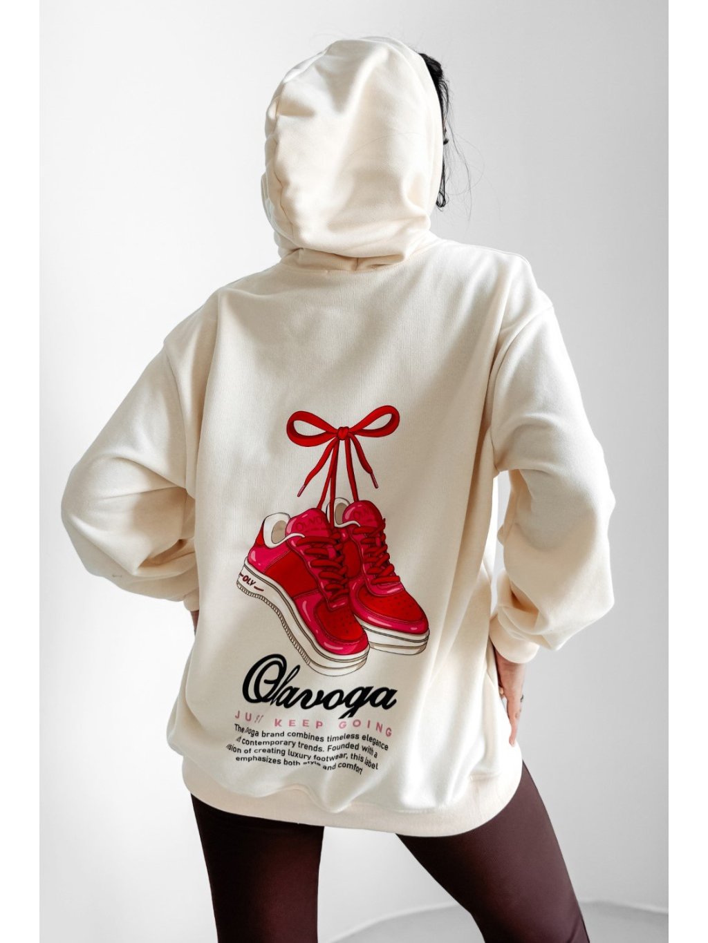 Prodloužená mikina vyrobená z prémiové BAVLNY s mírným strečem pro ještě větší pohodlí. Kapuce je nastavitelná a velká klokaní kapsa na přední straně poskytuje praktičnost. Na hrudi je ručně psané, minimalistické logo OLAVOGA se speciálním vzorem. Zadní strana je zdobená velkou, brandovanou grafikou, díky které je vzhled opravdu trendy.