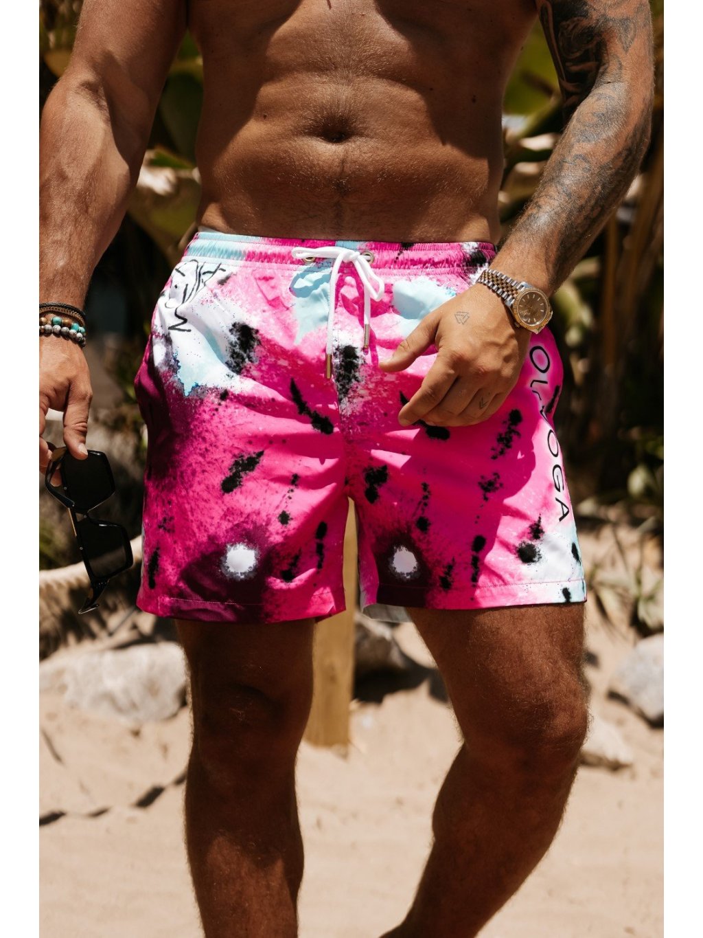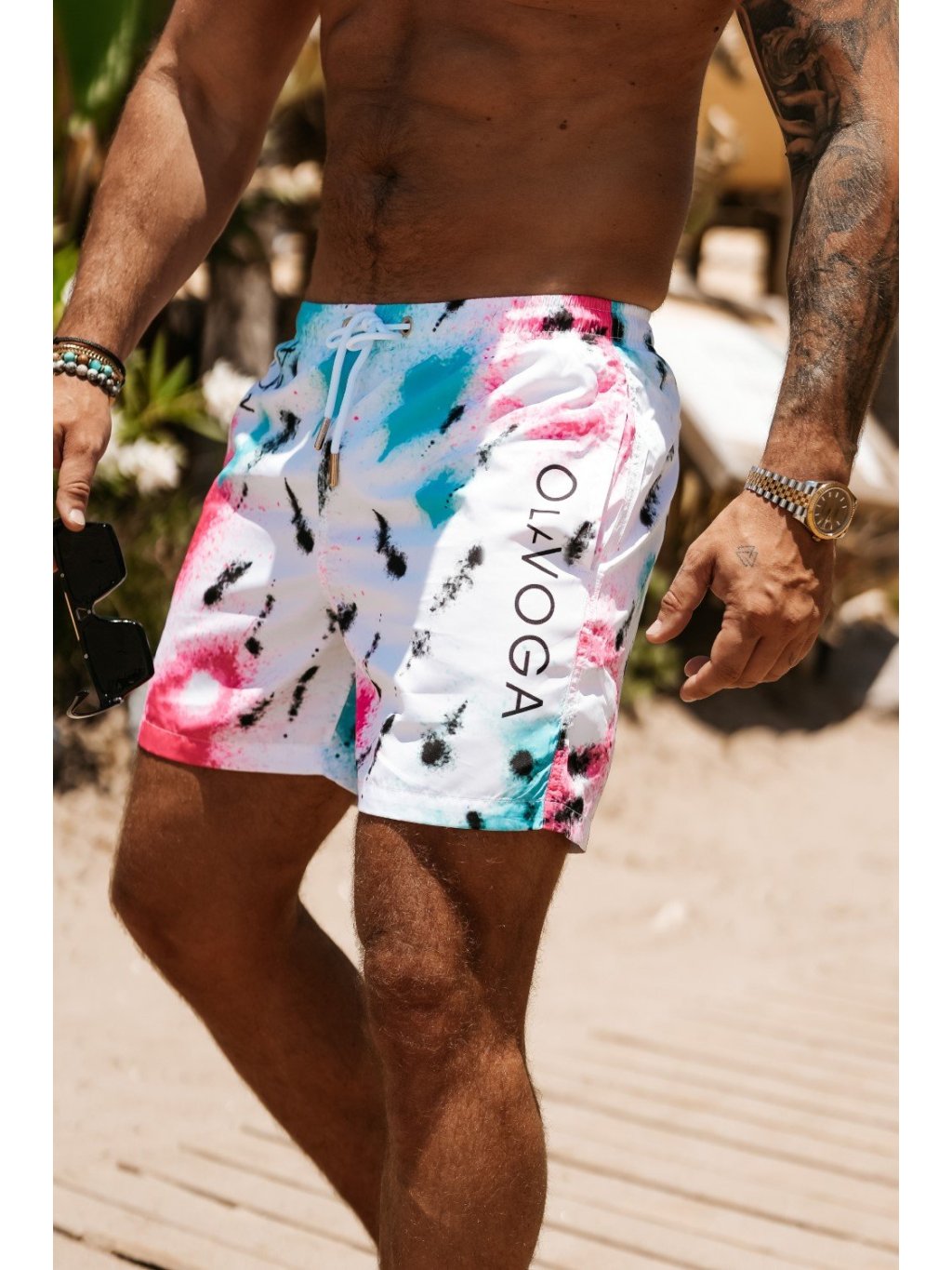 Pánské plavky ve sportovním stylu vyrobené z lehkého, rychleschnoucího materiálu. Elastický pas, nastavitelný stahovací šňůrkou. Vnitřní síťovaná podšívka zajišťuje pohodlí a oporu. Vybaveny bočními kapsami, vpředu s efektním vzorem stříkanců barvy a velkým logem OLAVOGA.