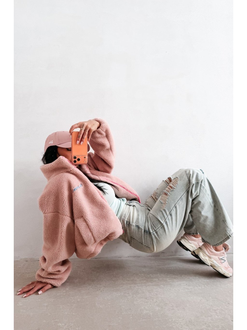 Teddy kabát ležérního stylu s vysokým stojáčkem a zapínáním na zip. Kabát je vyroben z měkkého materiálu se šerpovou strukturou s příjemným pocitem, s mírně zkráceným střihem a sníženými rameny. Po stranách má praktické kapsy. Přední část zdobí decentní vyšívané logo OLAVOGA, zatímco zadní část zdobí velkolepá výšivka s velkým monogramem OLV. délka: 54 cm, Velikost poprsí: 120 cm, Vnější délka rukávu: 55 cm, Vnitřní délka rukávu: 47 cm
