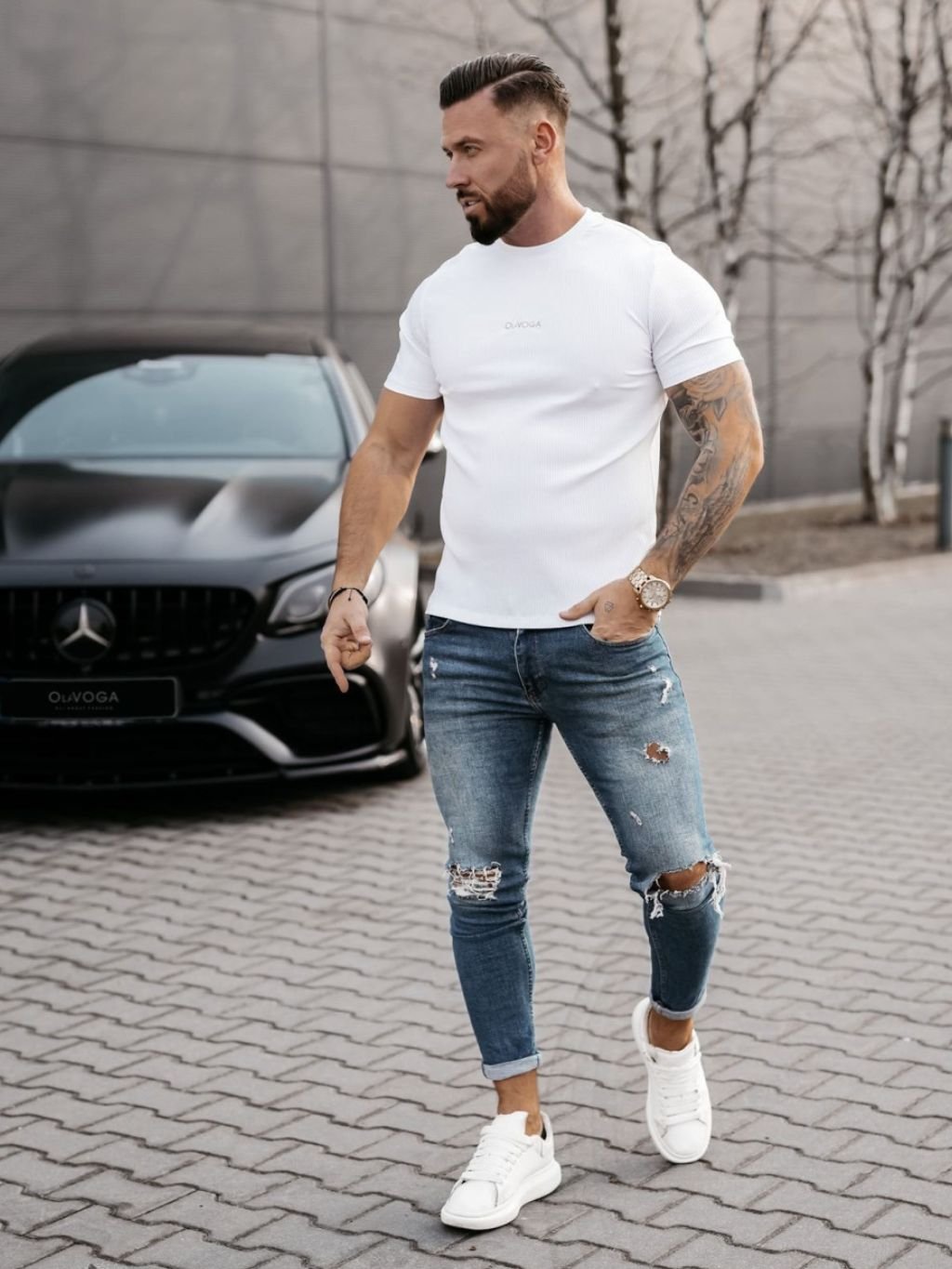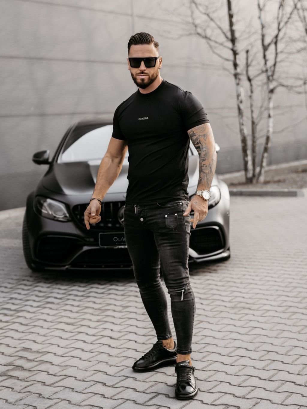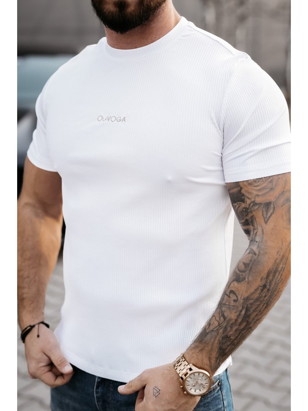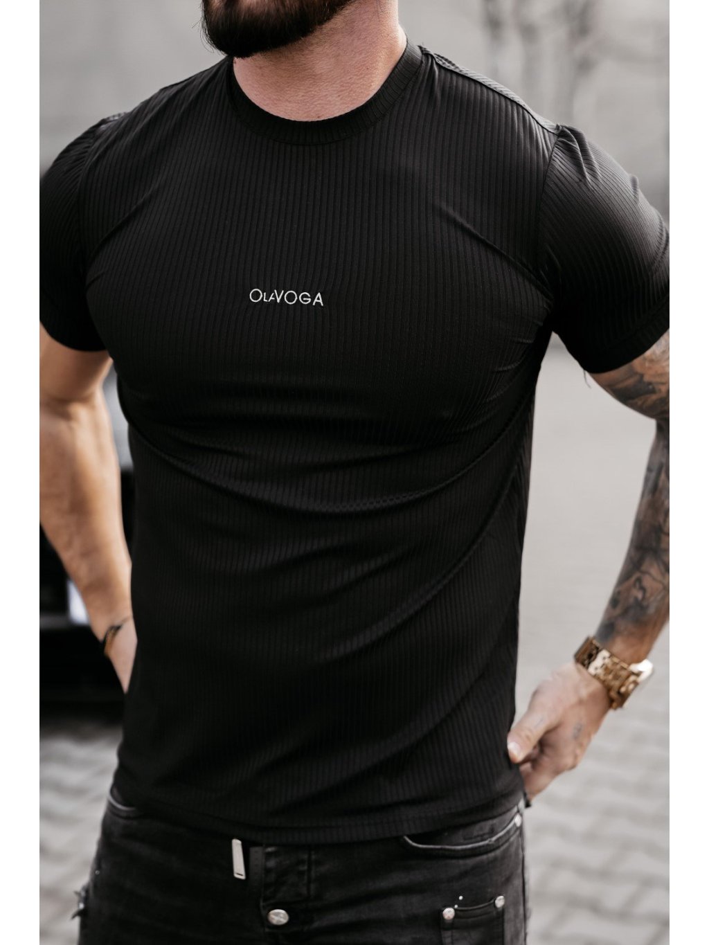 Model meria 185 cm a má na sebe veľkosť L. Pánske slim fit tričko s krátkym rukávom vyrobené z kvalitnej rebrovanej a elastickej látky pre vypasovaný strih a pohodlné nosenie.Na prednej strane je minimalistická výšivka loga OLAVOGA, ktorá dodáva tričku elegantný a čistý vzhľad.