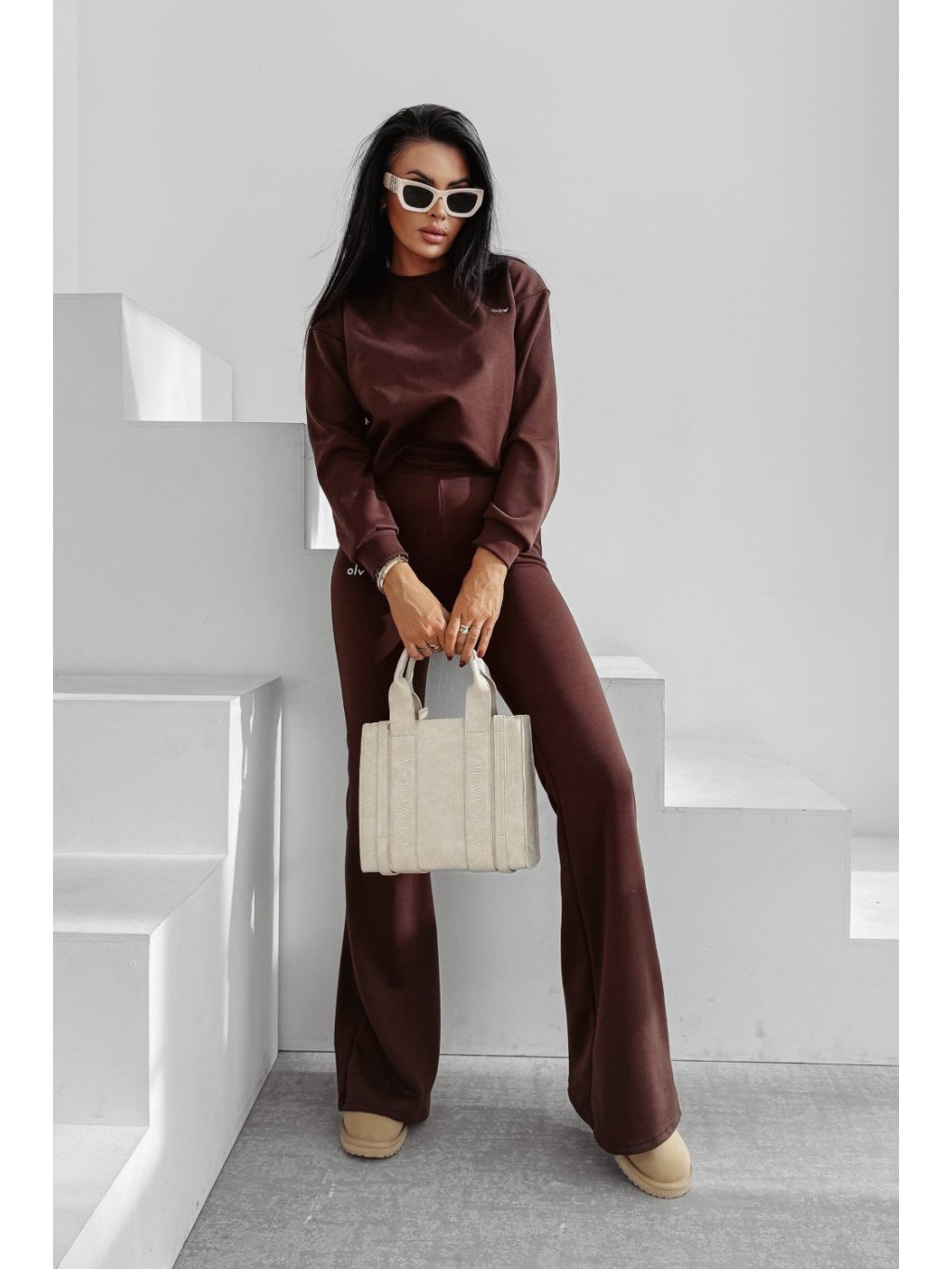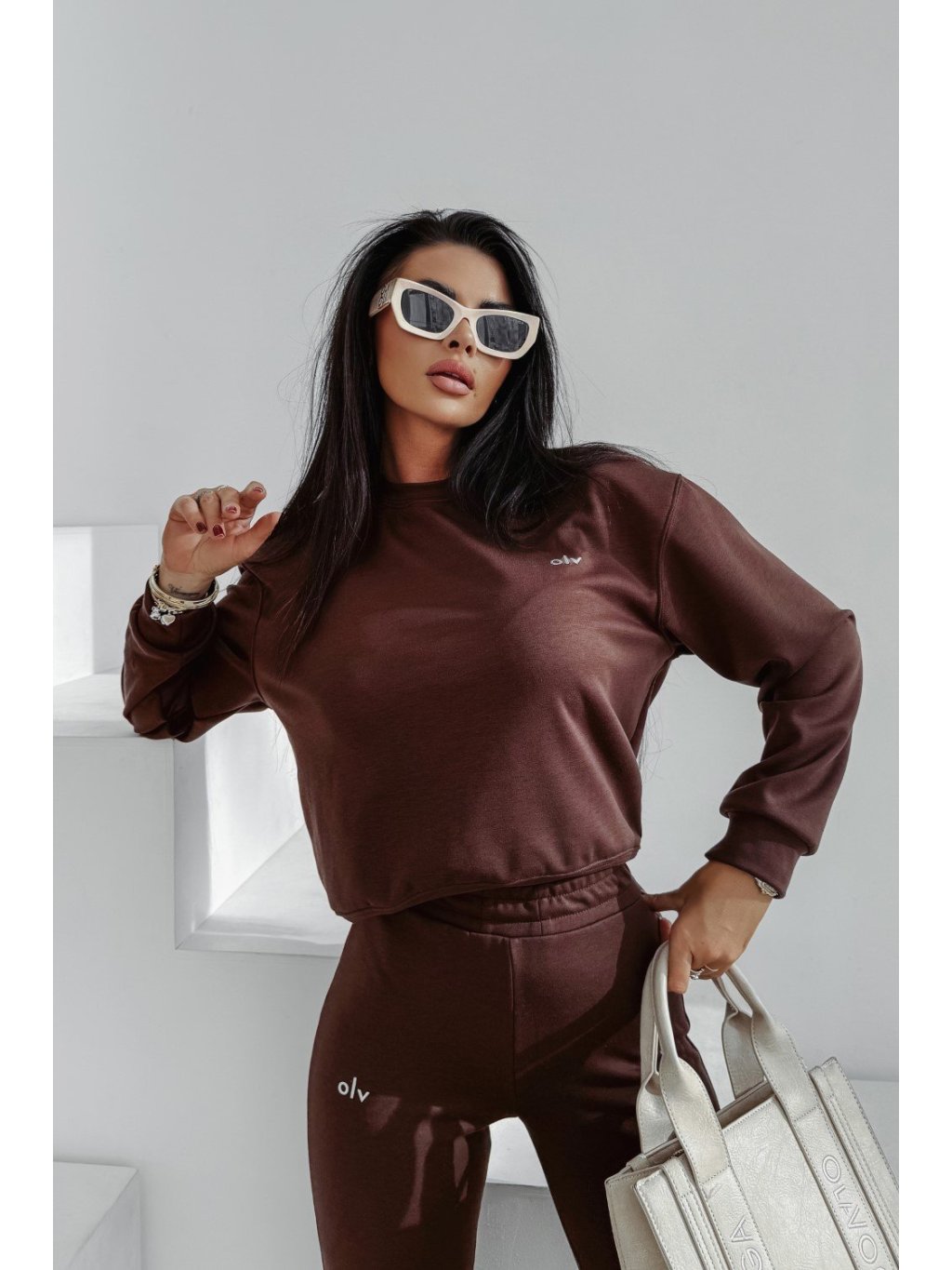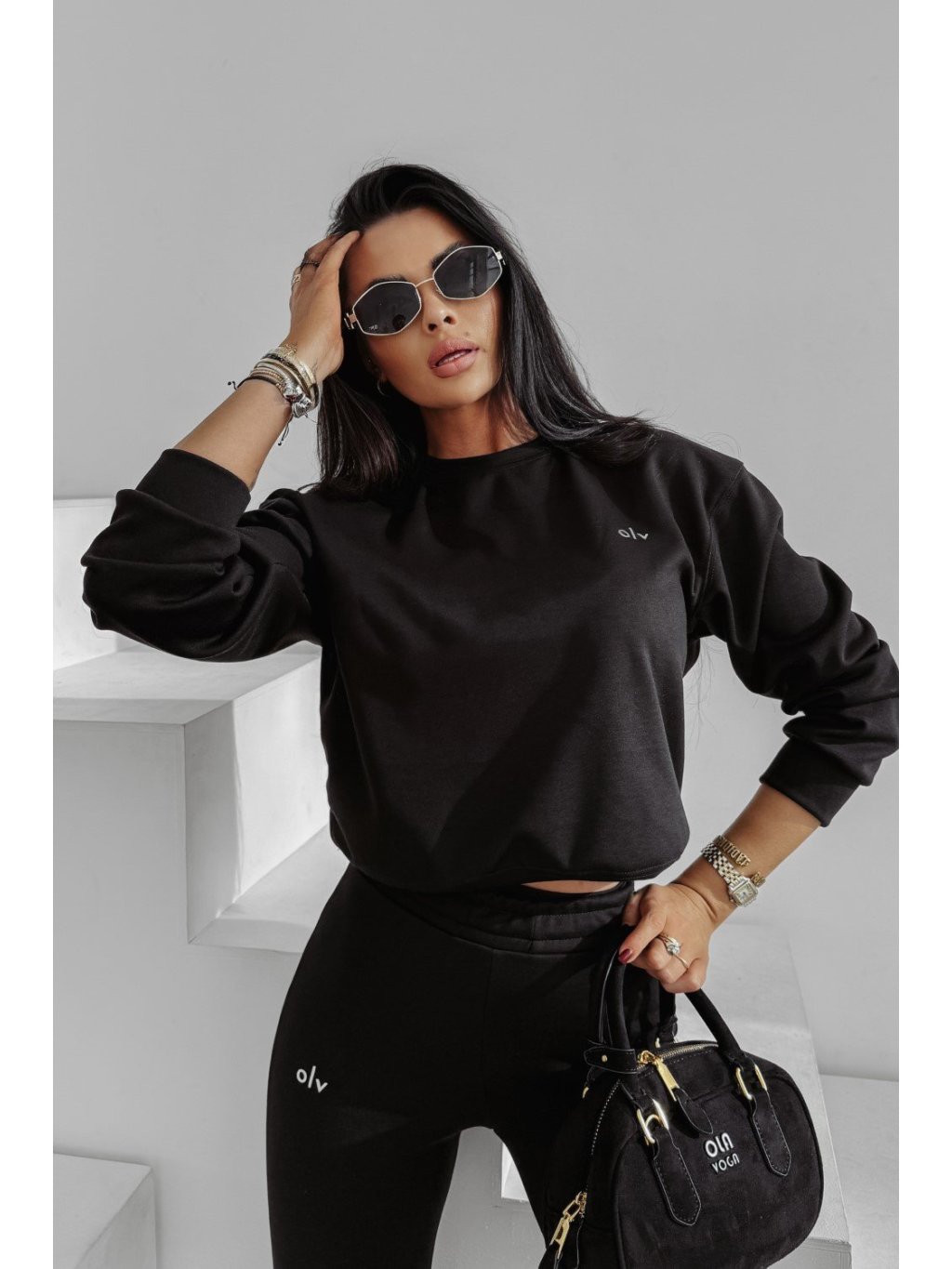 Pohodlný dámský set vyrobený z kvalitního, měkkého a příjemného žerzejového materiálu. Mírně nadrozměrný svetr bez kapuce. Zkrácený střihMinimalistické logo OLV vpředu. Kalhoty s vysokým pasem, přiléhavé. Široký pas. Zdobené decentním logem OLV vpředu