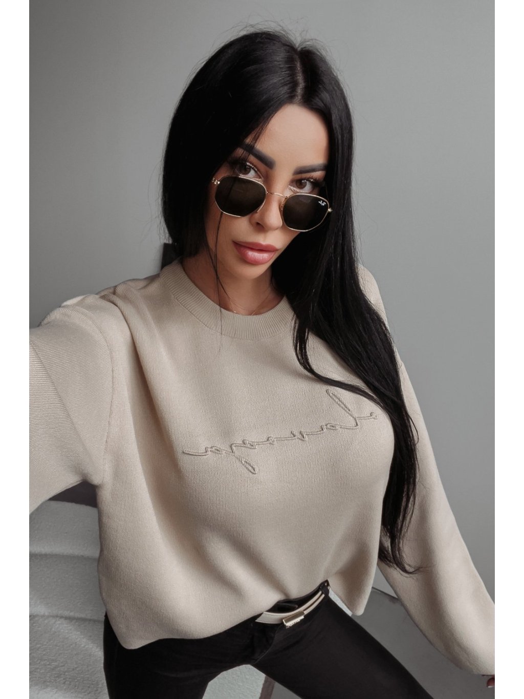 Modelka meria 165 cm, má na sebe veľkosť S