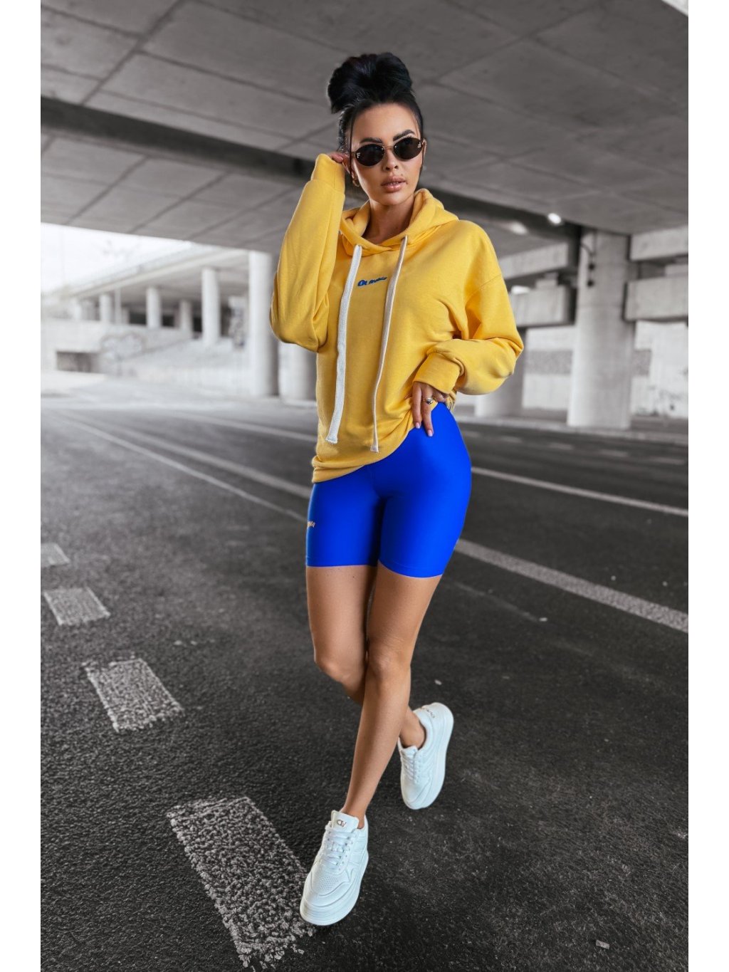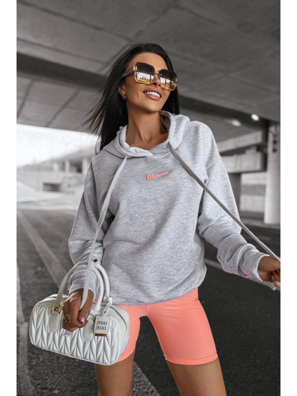 Modelka má výšku 165 cm a nosí velikost S. Klasická přiléhavá mikina s kapucí vyrobená z kvalitního materiálu BAVLNA s měkkým vnitřním povrchem a pohodlným střihem. Kapuce je nastavitelná šňůrkou, rukávy a pas jsou zapínány žebrovanou vsadkou. Přední strana je zdobena speciálním potiskem loga OLAVOGA, zatímco zadní strana má velké logo značky a čistý nápis SS/25.