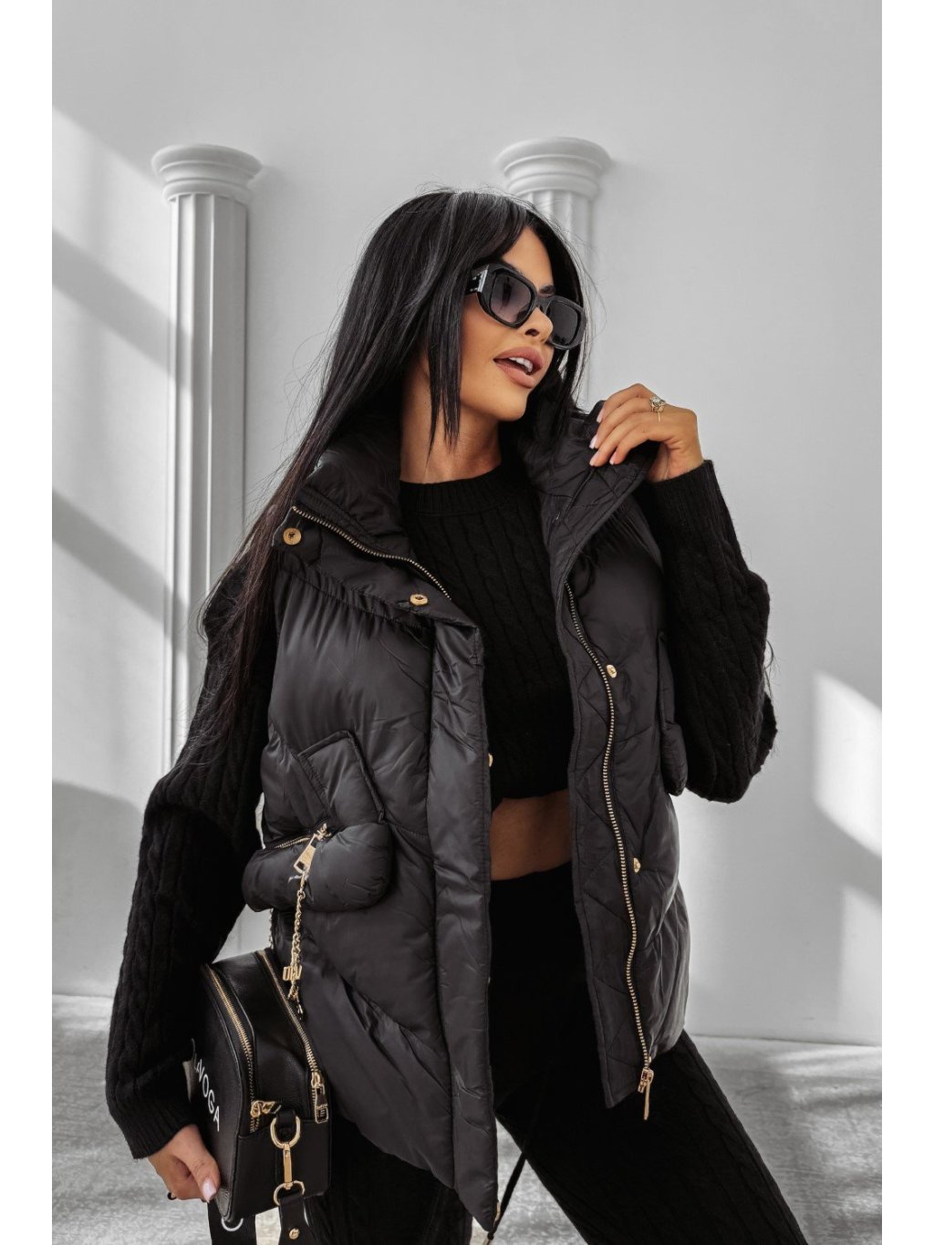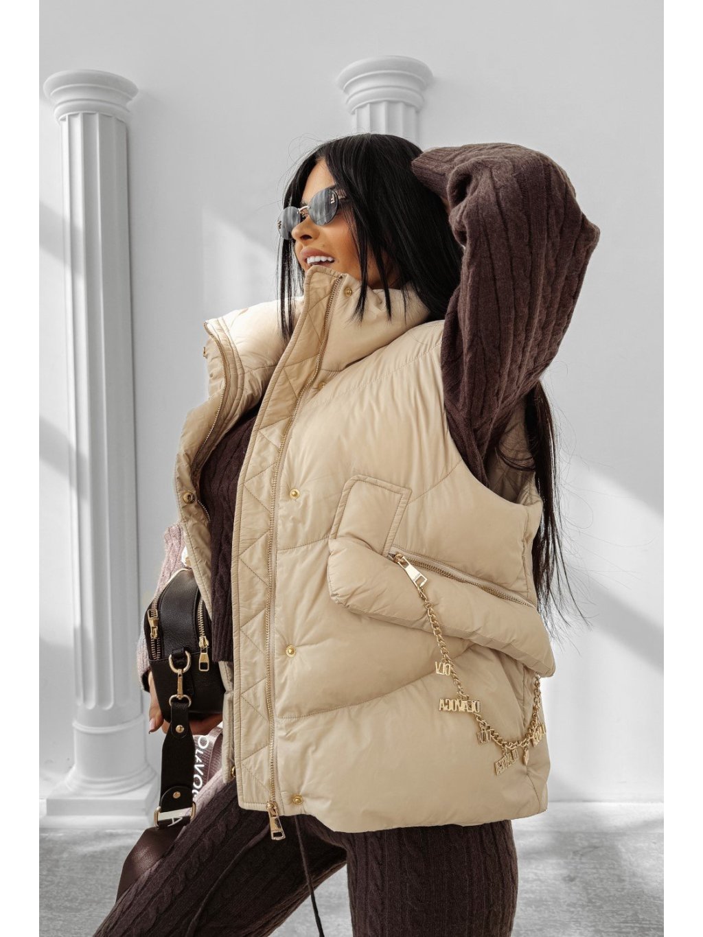 Oversize prošívaná vesta, kterou lze perfektně kombinovat se svetrem nebo bundou. Vyrobená z lehkého, ale zároveň teplého materiálu. Zapínání na zip, boční kapsy a decentní logo na přední straně.