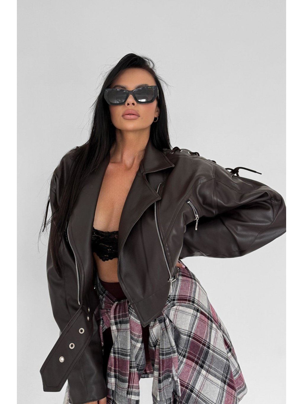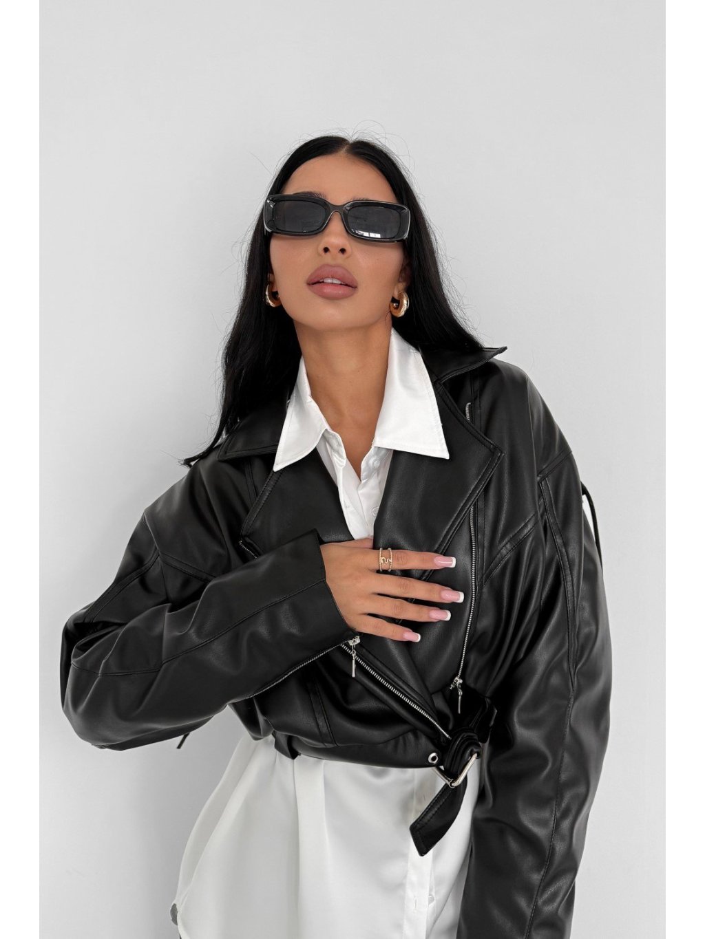 Kožená bunda s oversize střihem. Vyrobená z měkké ekokůže, se zipem a předními kapsami. Na zádech je vyraženo logo OLAVOGA, díky čemuž je výjimečným detailem. Sportovní i moderní zároveň.