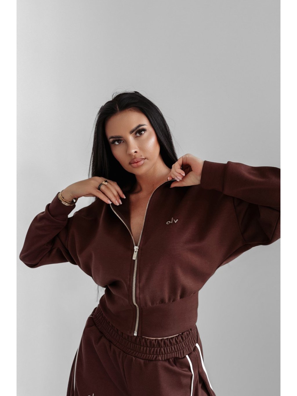 Přiléhavý, zkrácený top bez kapuce se zapínáním na zip. Vyrobeno z elastické, vysoce kvalitní směsi bavlny pro pohodlné nošení. Zdobený decentním logem "OLV" na hrudi. Ideální pro kombinování s kalhotami SILENT STORM. Složení: 60% polyester, 34% bavlna, 6% spandex Rozměry a velikosti: S, M & délka délka 0,5 cm, obvod hrudníku 52 cm