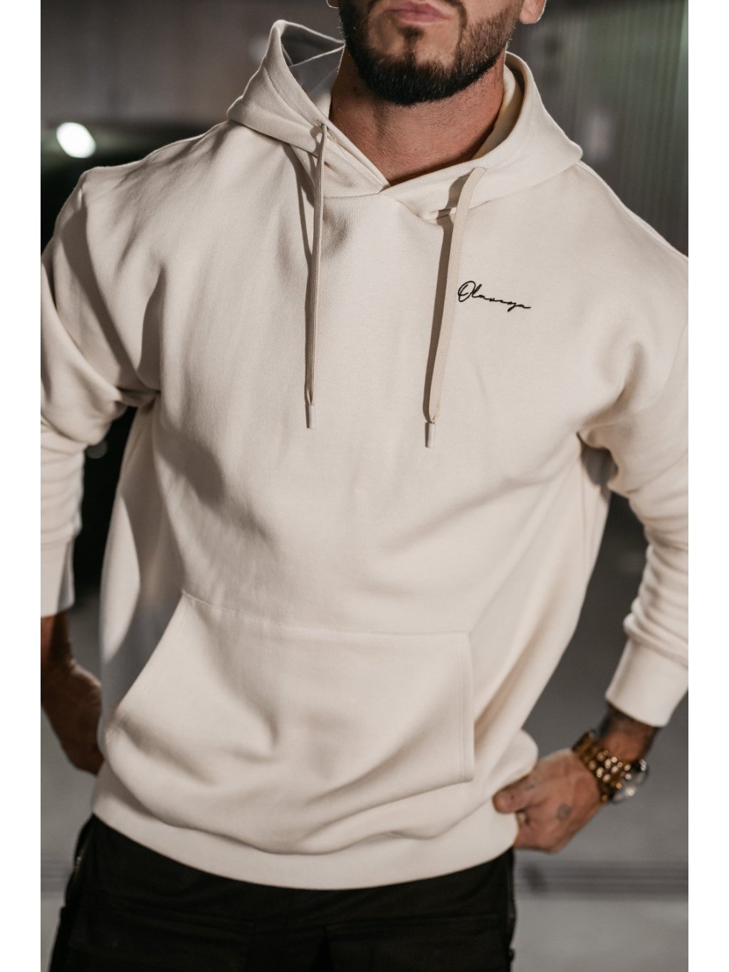 Pánská mikina s kapucí - OLAVOGA. Volná mikina s kapucí vyrobená z vysoce kvalitní, měkké a prémiové bavlny. Na hrudi je zdobená jemnou výšivkou OLAVOGA s nápisem. Má praktickou klokaní kapsu a nastavitelnou kapuci, kterou doplňuje silná šňůrka na stahování.Složení: 80% bavlna, 20% polyester