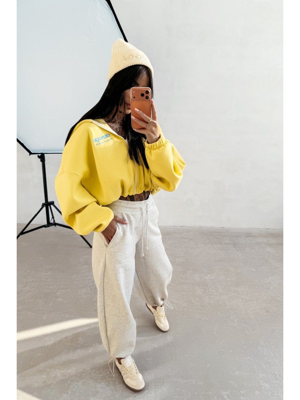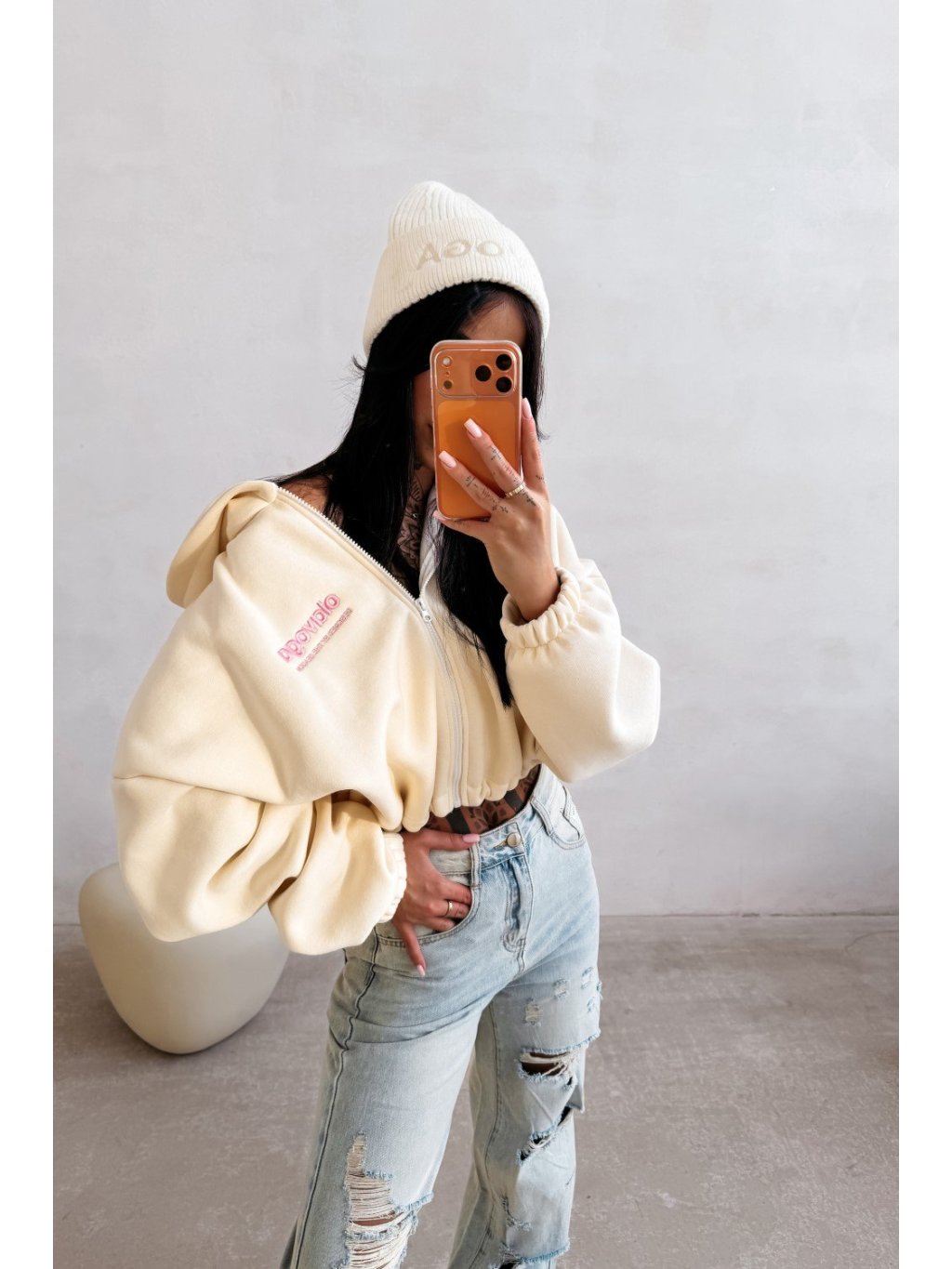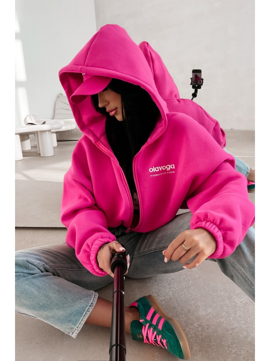 Volně střižená zkrácená mikina na zip. Vyrobená z vysoce kvalitní BAVLNY. Elastický lem na okrajích zajišťuje pohodlí a dobrý střih. Přední strana je zdobená čistým, vyšívaným logem OLAVOGA, zatímco zadní strana má velké, poutavé logo.