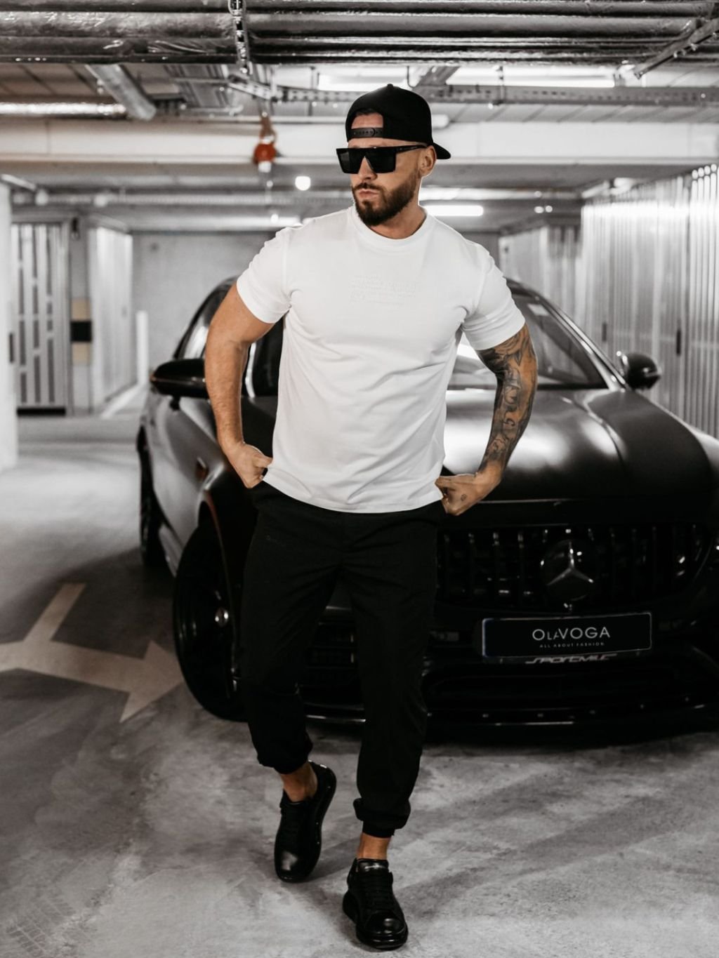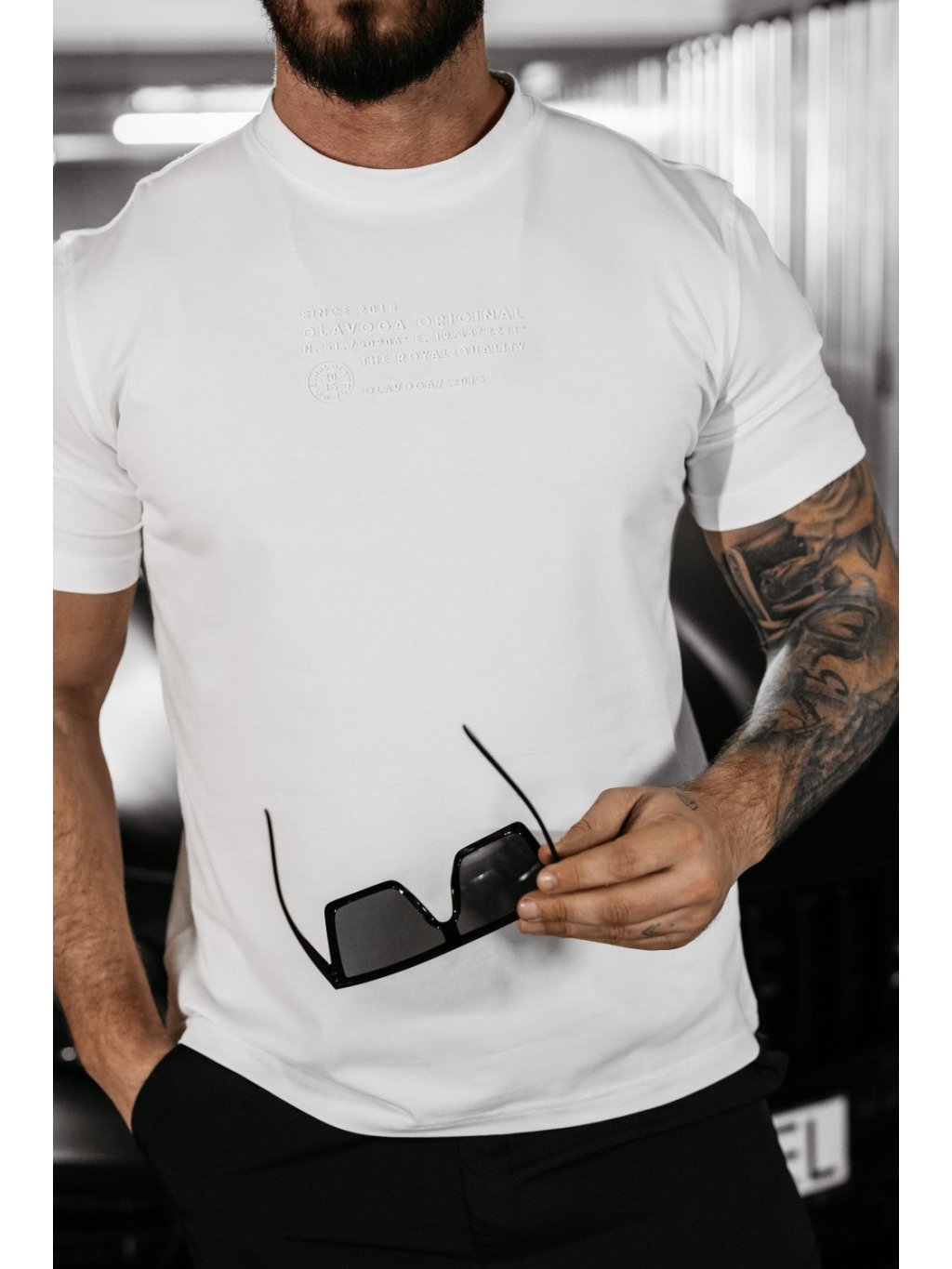Logo OLAVOGA a nápisy s 3D efektom na prednej strane dodávajú tričku moderný a jedinečný vzhľad.
