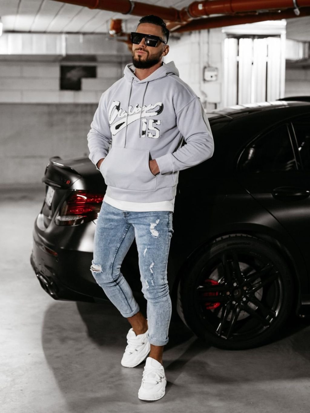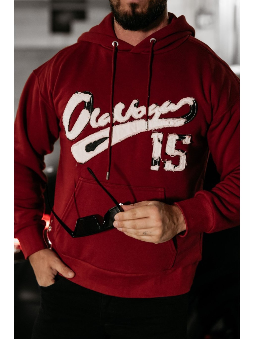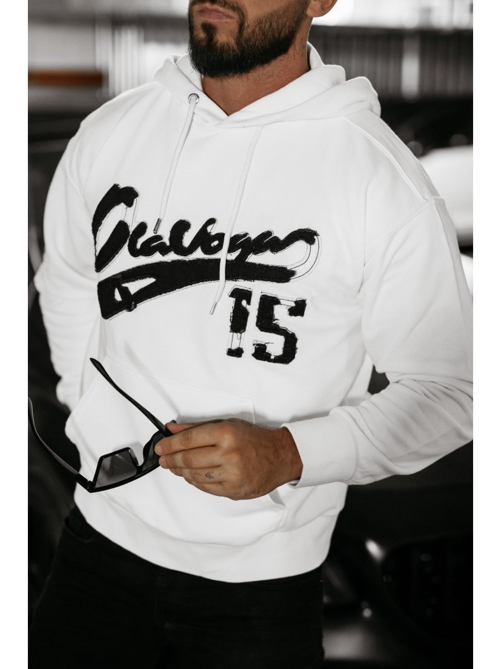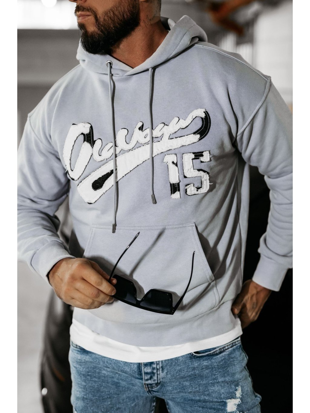 Oversize szabású férfi pulóver kapucnival, kiváló minőségű BAVLNA anyagból. Az elülső részén egy nagy zseb található, a márka minimalista logójával. A hátoldalon és az elején nagy, 15-ös számmal ellátott logó díszíti.