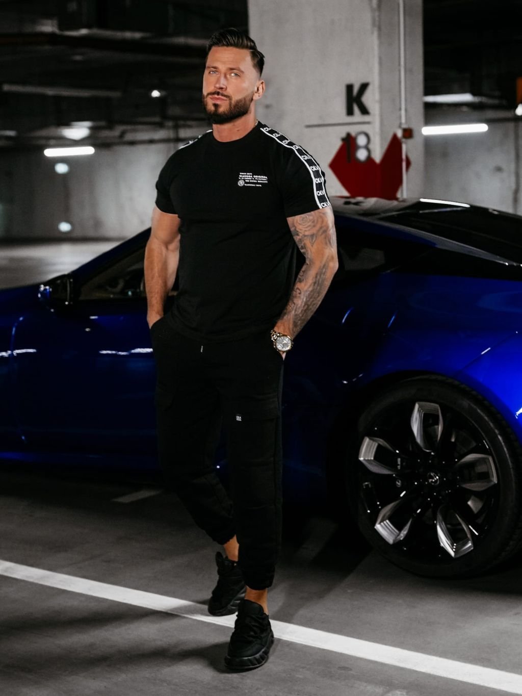 Model meria 185 cm a má na sebe veľkosť L.