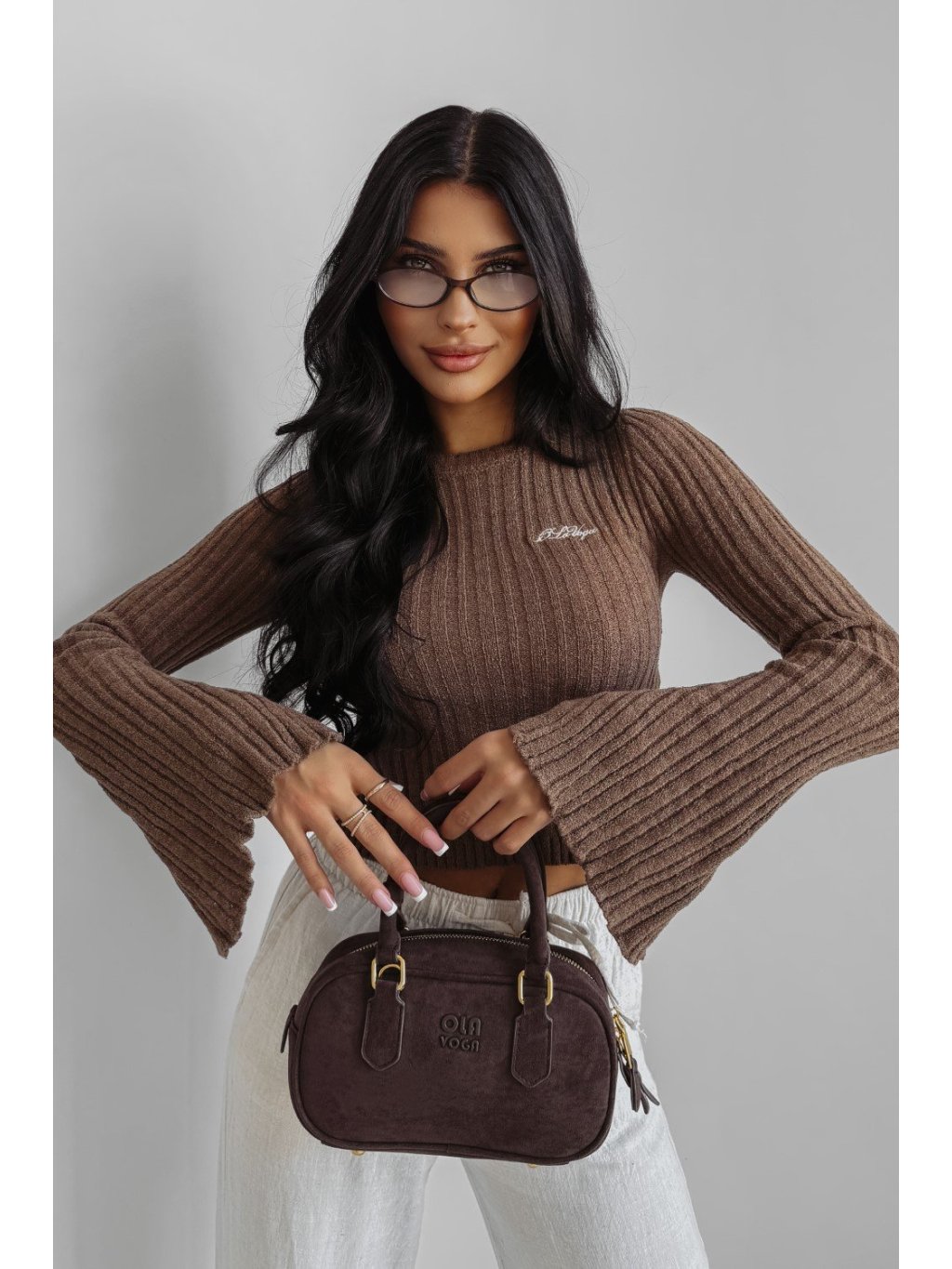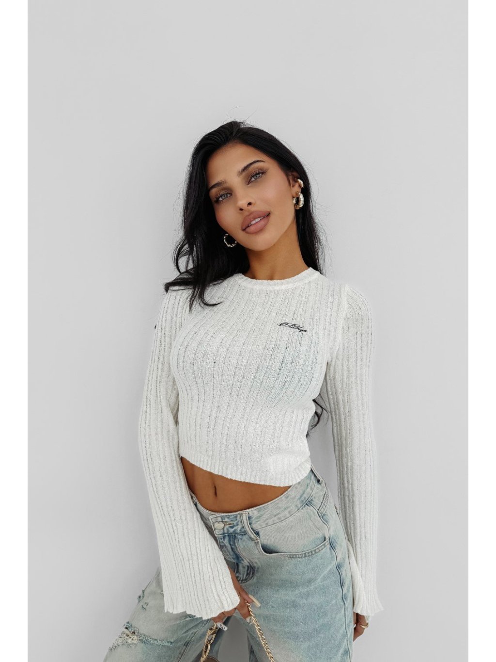 Priliehavý rebrovaný sveter. Vyrobený z elastického materiálu. S dlhými rukávmi a vysokým golierom. S logom na hrudi.