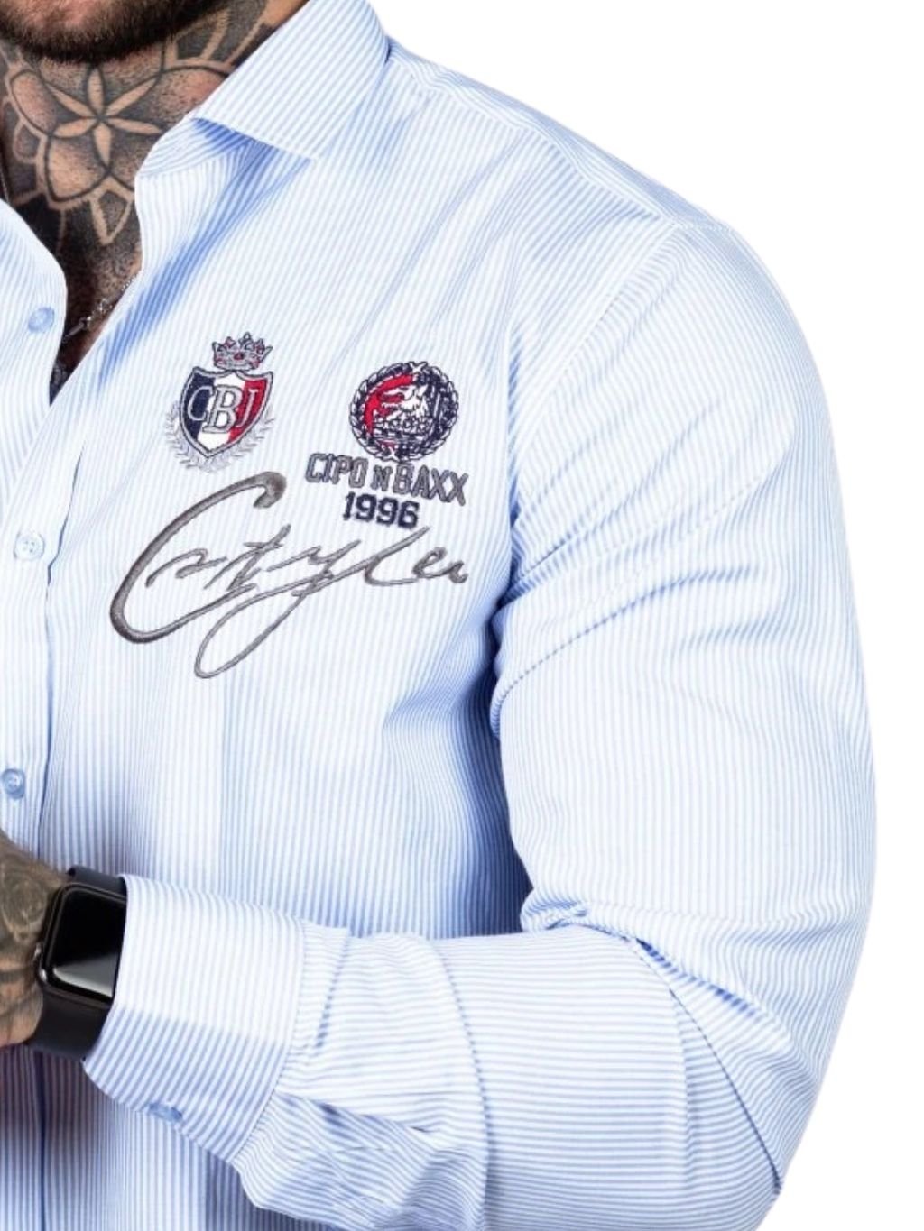 Pánská košile CIPO & BAXX. Na hrudi jsou výšivky. Moderní, jedinečný a nadčasový design se zaměřením na kvalitu a detail.