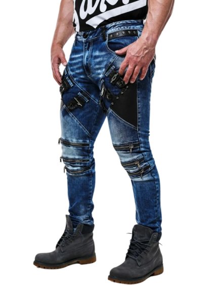 Pánské džíny CIPO & BAXX s koženými detaily, výraznými zipy, kapsami na stehnech a stříbrným nápisem CBJXX Moderní, jedinečný a nadčasový design se zaměřením na kvalitu a...