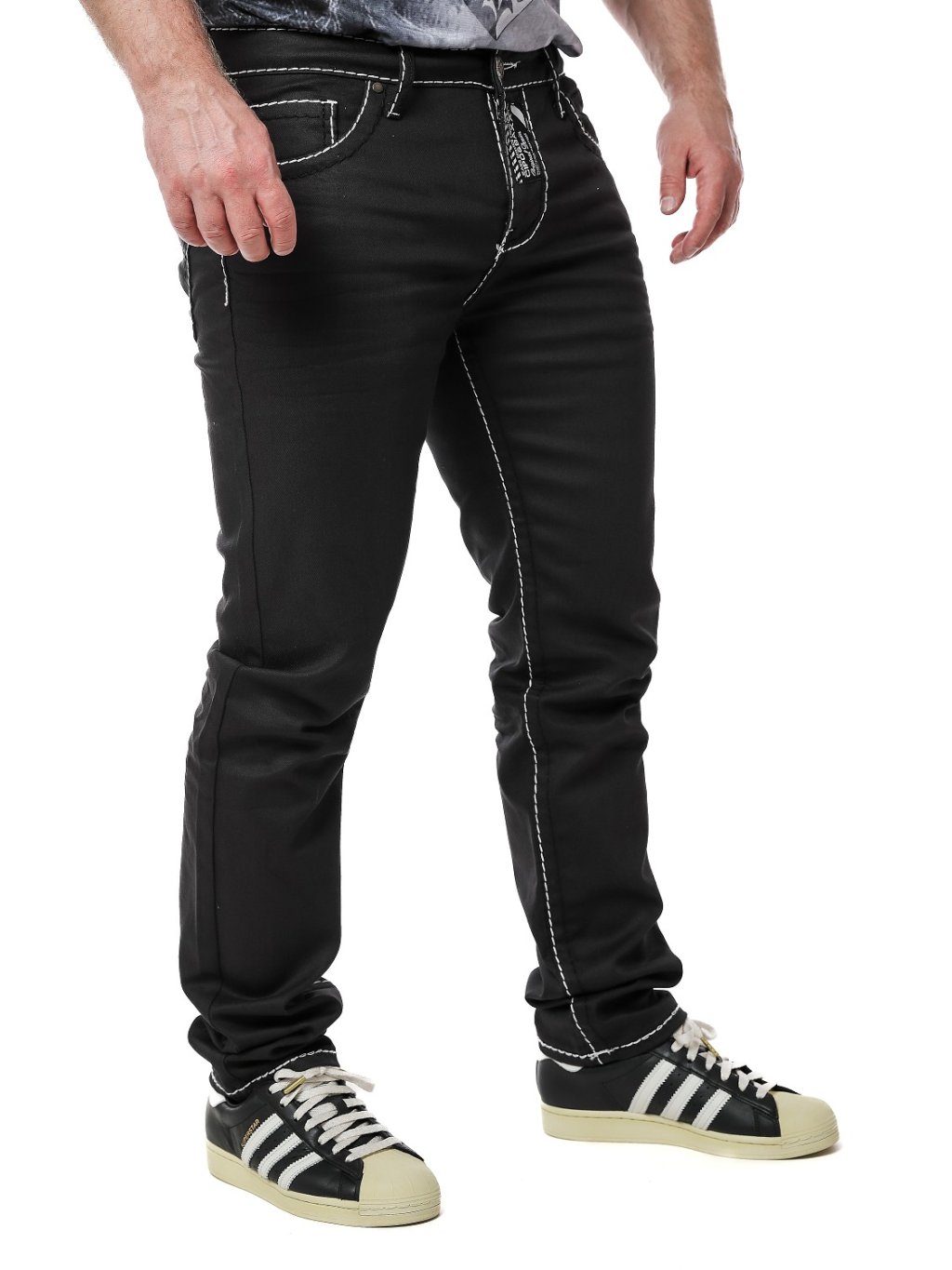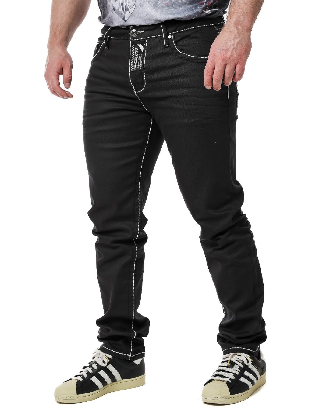 - Efektná čierna farba s oderom - Efektné zdobenie hrubou niťou - Prešívanie na nohaviciach - Reliéfne logo na zadnom vrecku - Štyri zadné vrecká, dve na zips - Zapínanie...