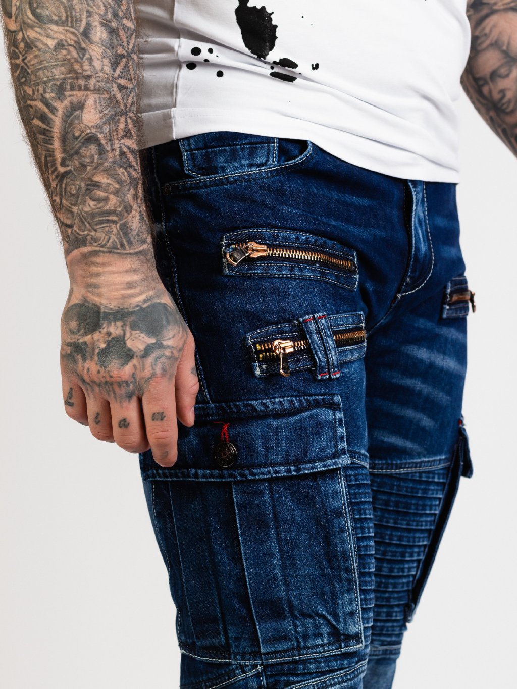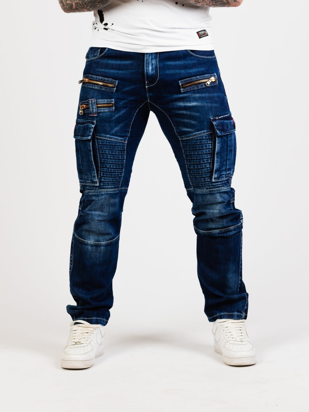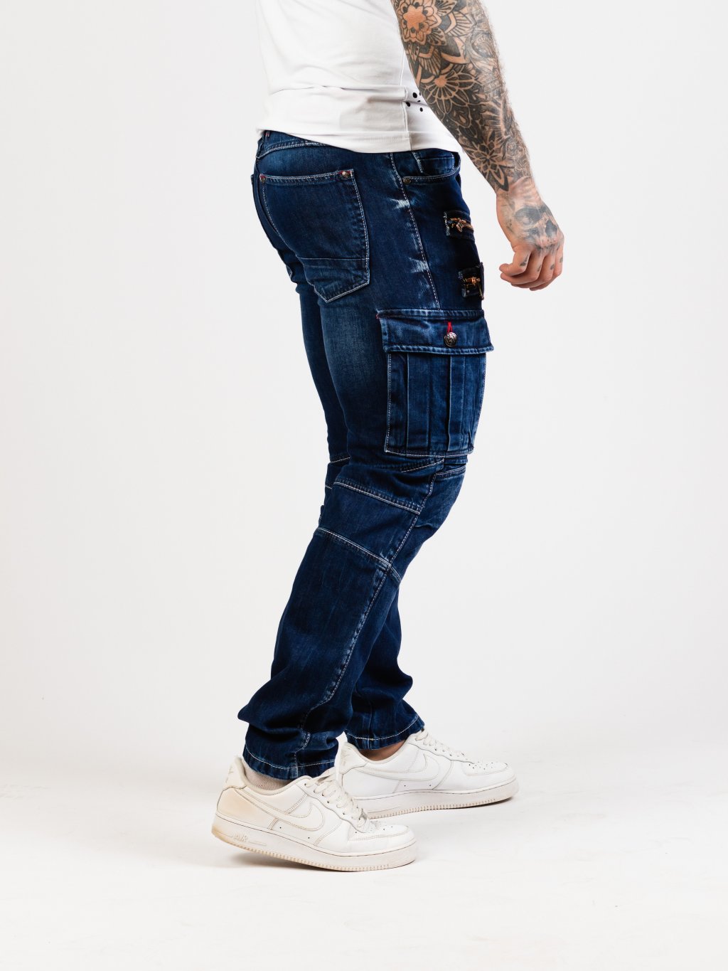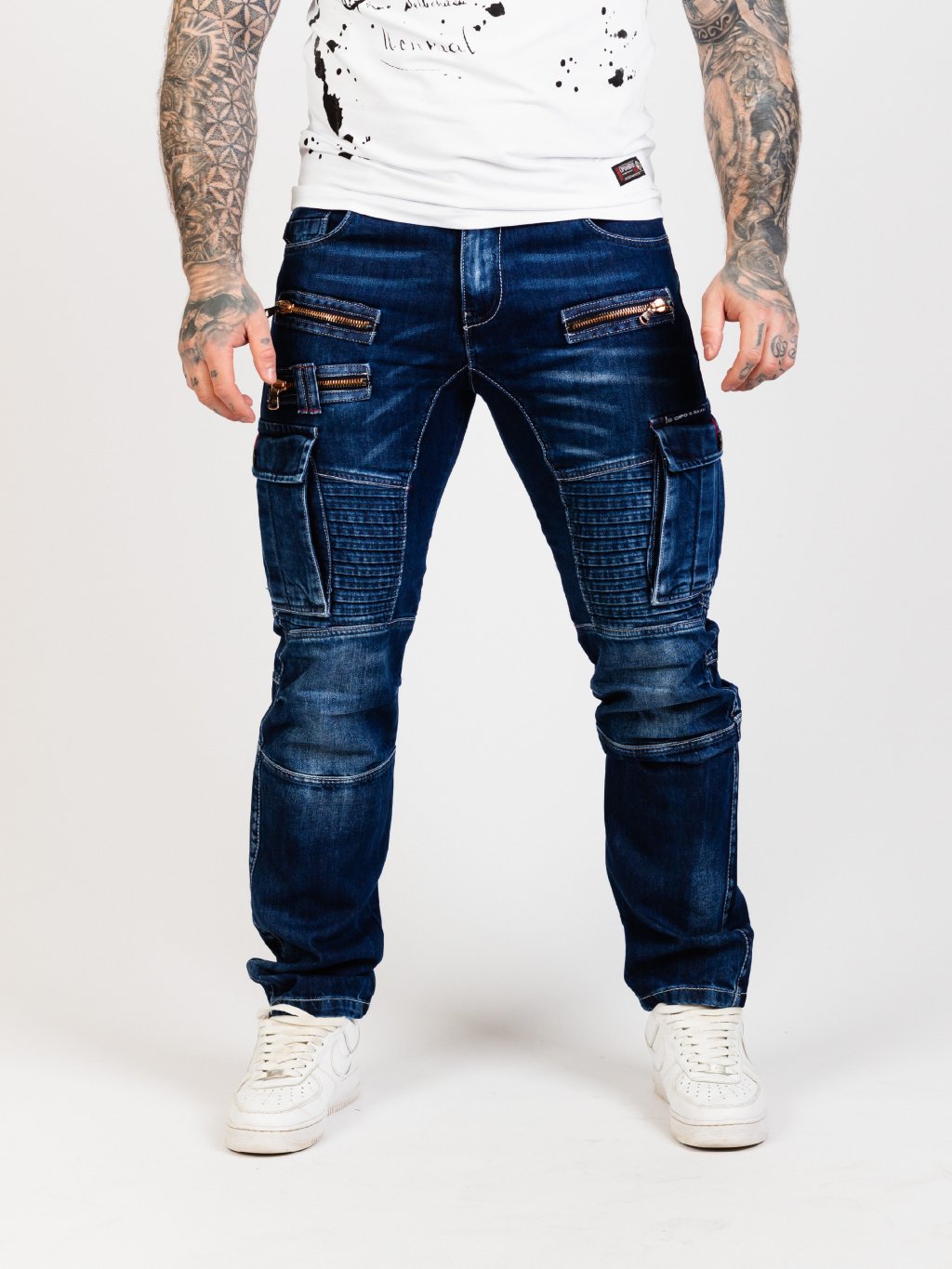 - Pánské jeansové kalhoty typu bojové kalhoty - Zapínatelné na zip - Tři přední kapsy a dvě zadní kapsy se zapínáním na knoflík - Dvě kapsy na kalhotách se zapínáním na...