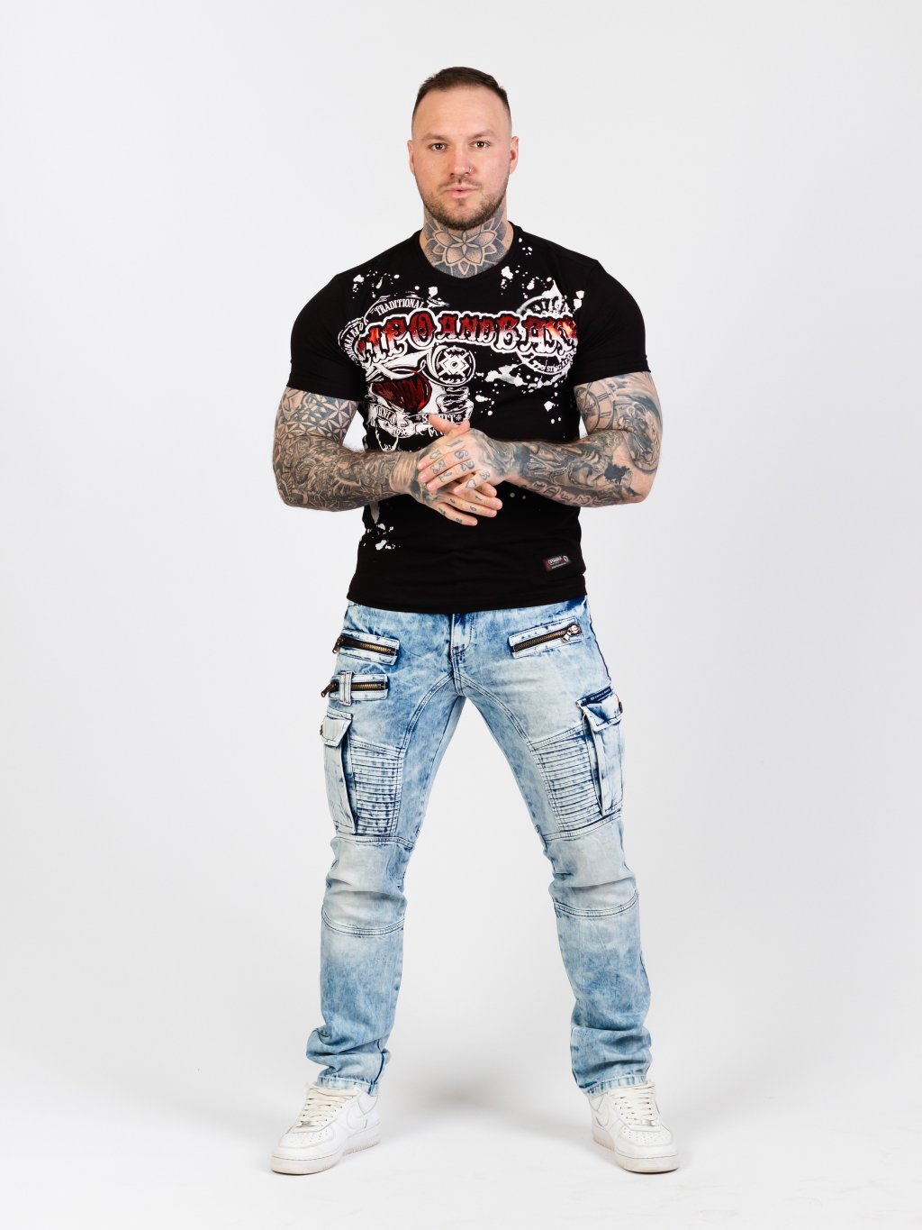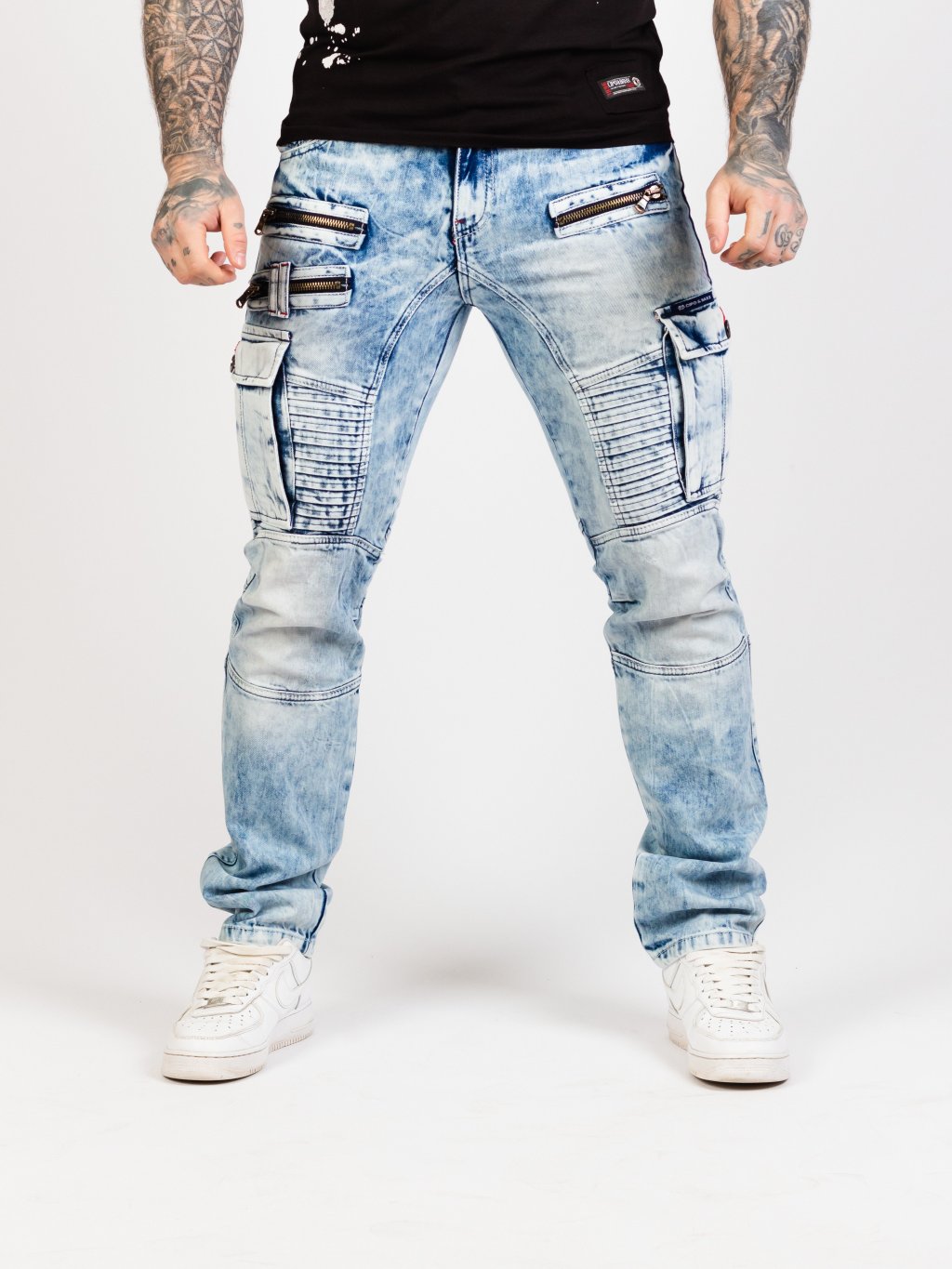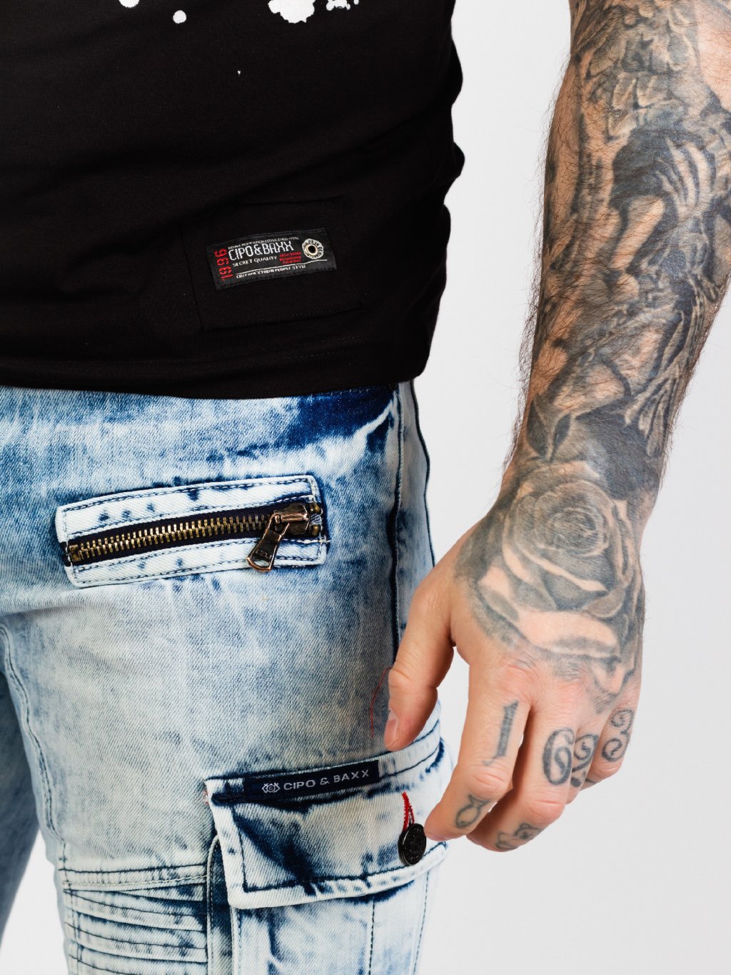 Pánské džíny CIPO & BAXX s koženými detaily, výraznými zipy, kapsami na stehnech a stříbrným nápisem CBJXX Moderní, jedinečný a nadčasový design se zaměřením na kvalitu a...
