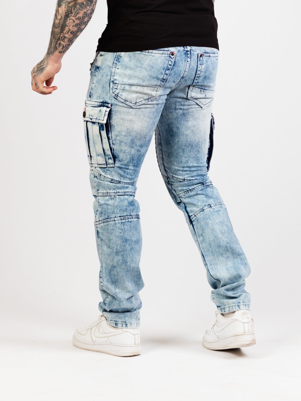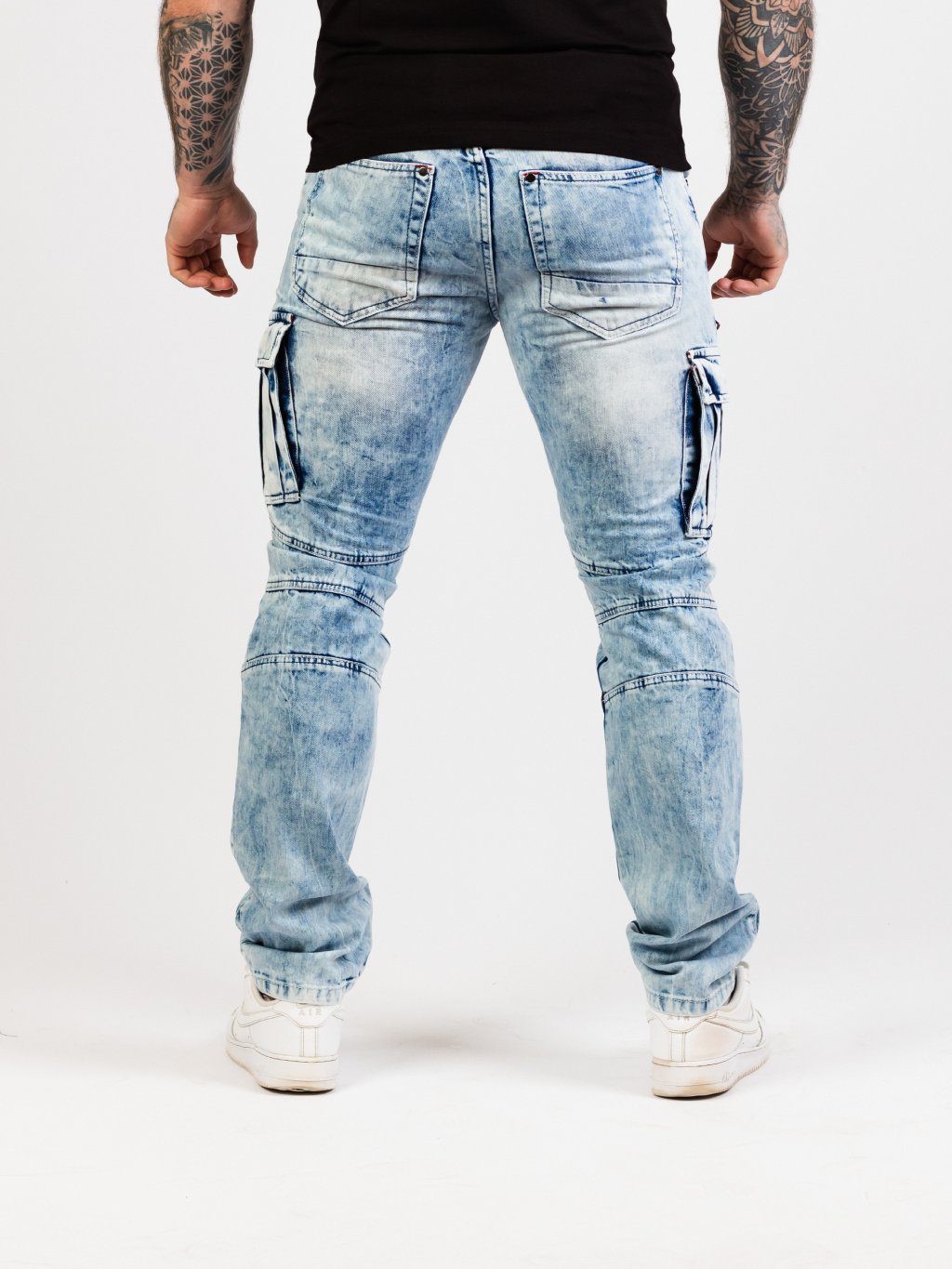 - Zapínání na knoflíky - Ozdobné zipy u kaps - Tření na kalhotách - Ve spodní části kalhot efekt zničení - Prošívání na kalhotách, obšité tlustou nití - Reliéfní...