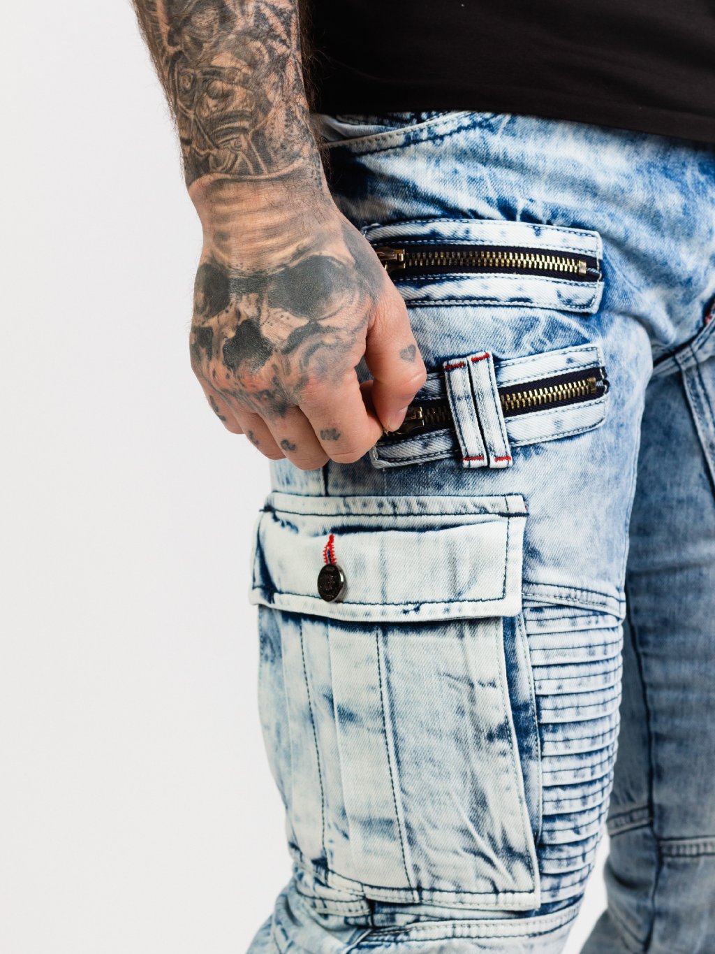 - Pánské modré džíny značky Cipo & Baxx - Džíny mají klasický střih - Detaily džínů: jsou se záplatami, poutky, extra kapsami - Normální velikost - Zapínání na knoflíky...