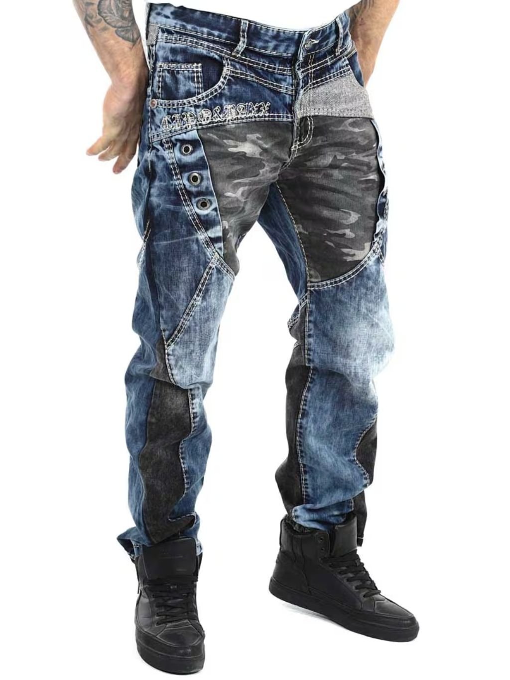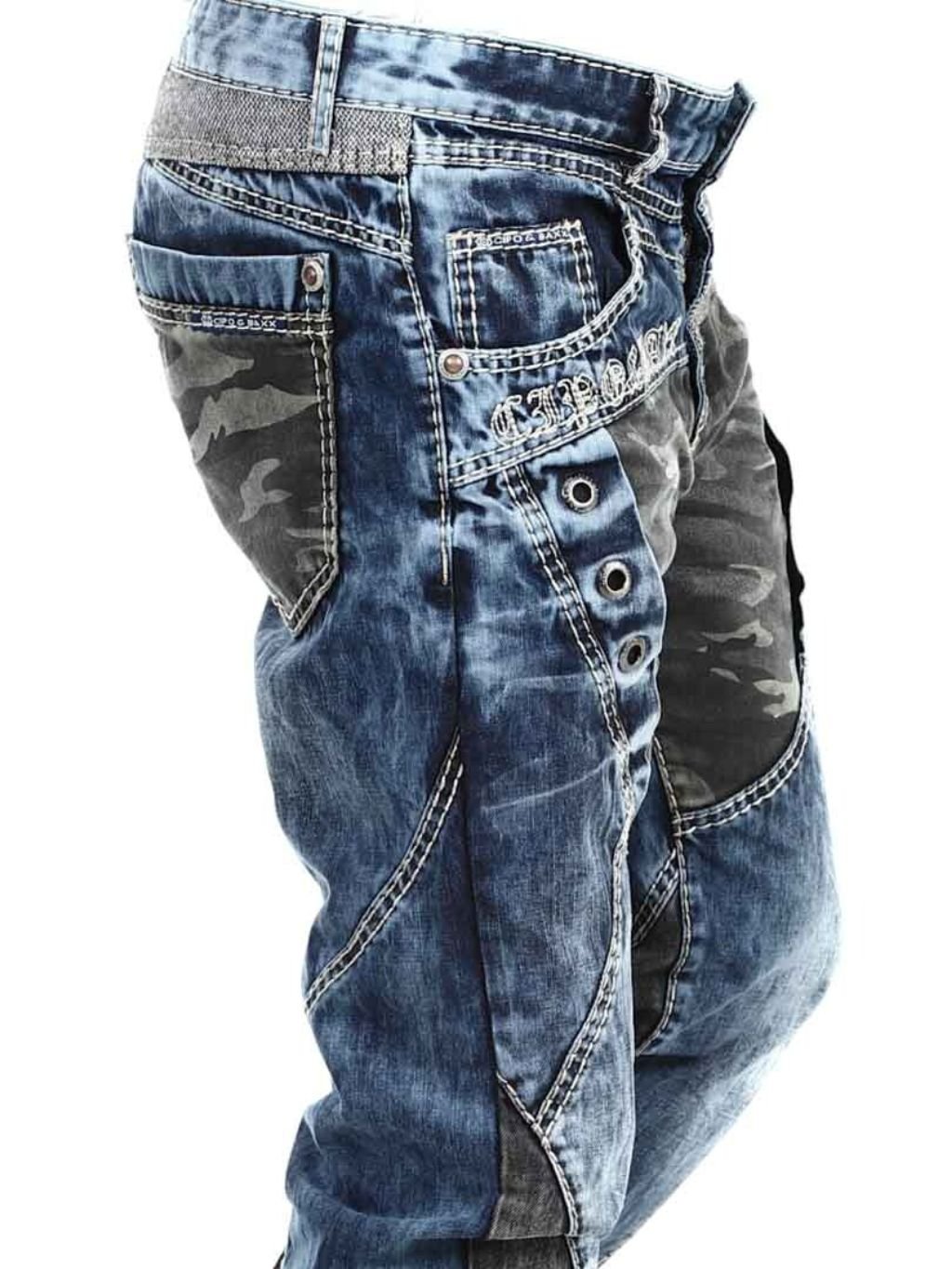 - Pánské modré džíny značky Cipo & Baxx - Džíny mají klasický střih - Detaily džínů: jsou se záplatami, poutky, extra kapsami - Normální velikost - Zapínání na knoflíky...
